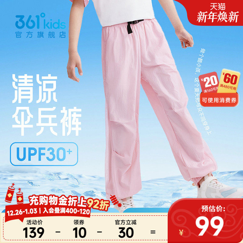 361童装女童运动长裤2025冰肤防晒夏季新款宽松户外降落伞裤裤子