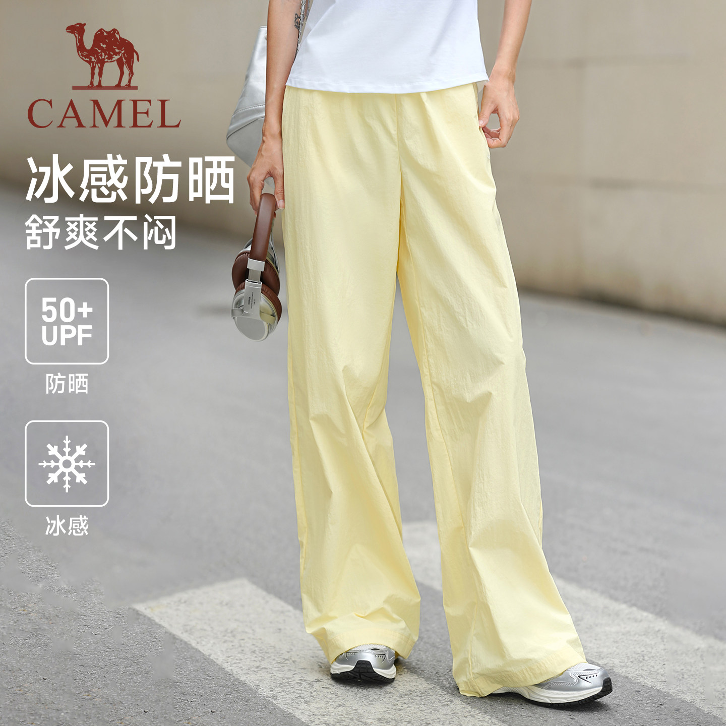 骆驼运动凉感休闲裤2026夏季新款百搭高腰显瘦防晒透气直筒阔腿裤