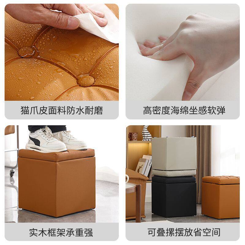 收纳储物凳多功能可坐家用矮凳换鞋搁脚凳方形猫抓皮客厅凳子