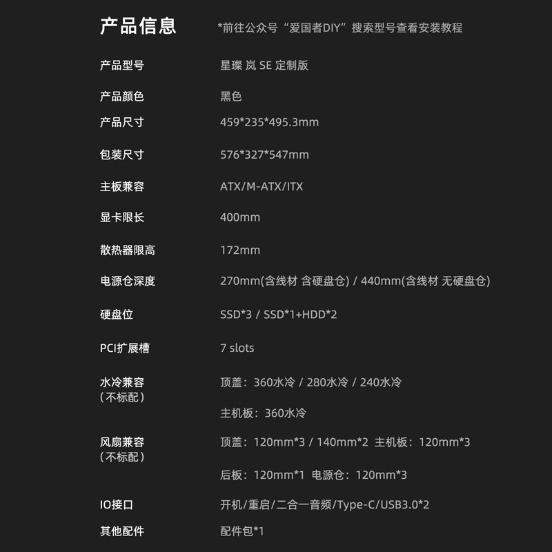 爱国者星璨岚SE海景房机箱ATX全景360水冷UV定制台式机电脑主机箱