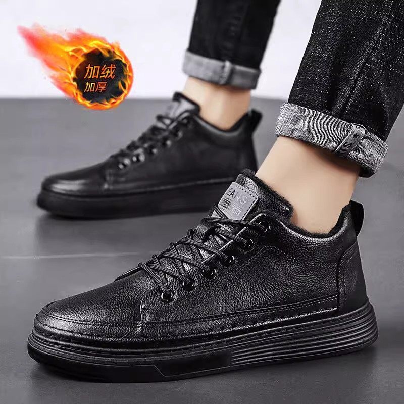 回力男鞋冬季加绒防水防滑板鞋皮鞋黑色工作劳保鞋男士休闲鞋耐磨