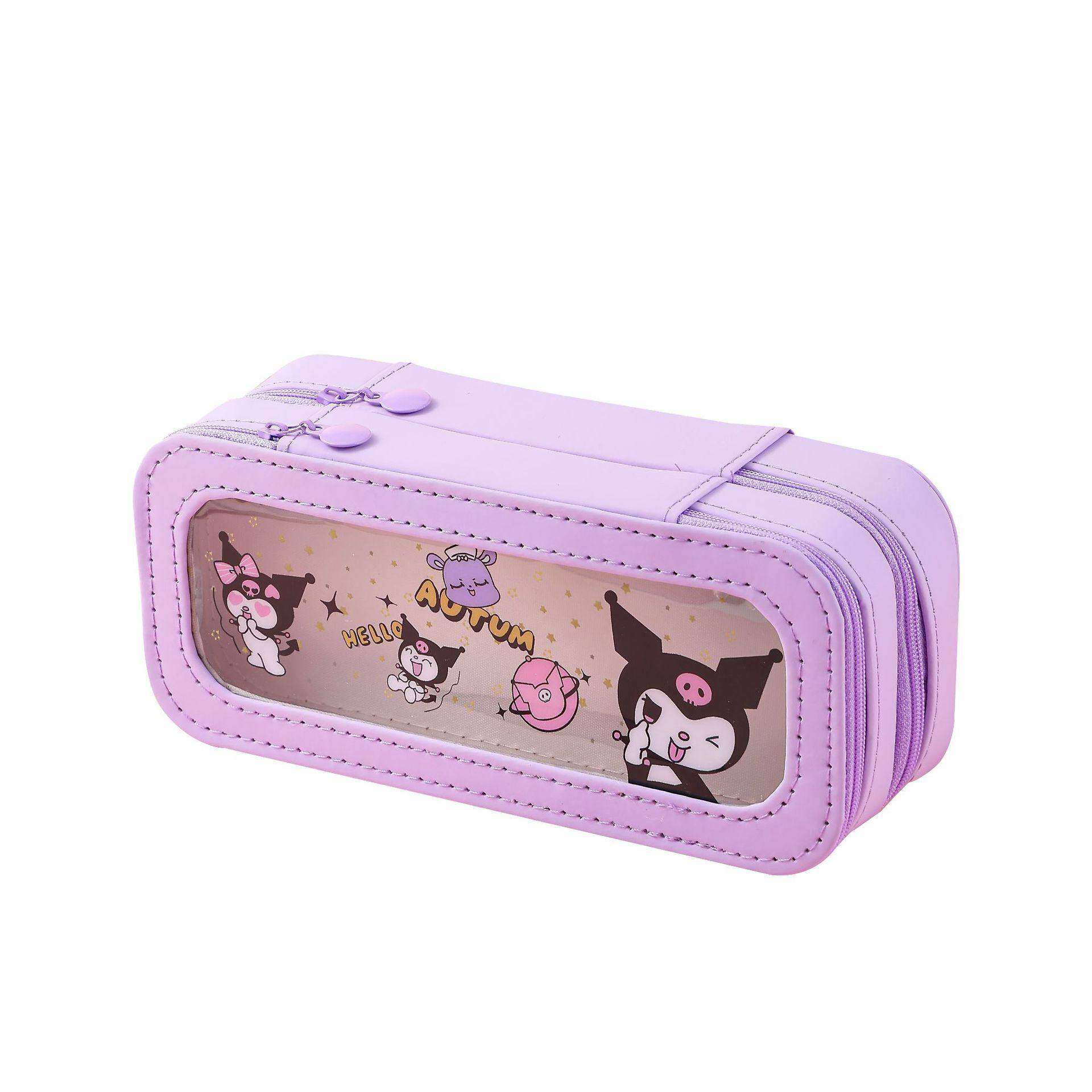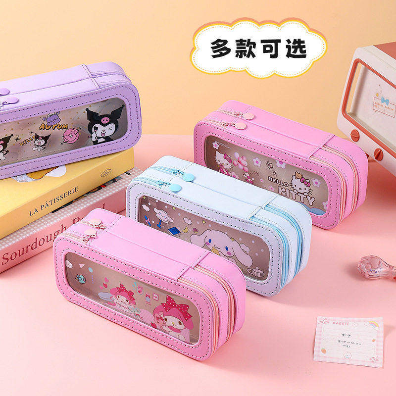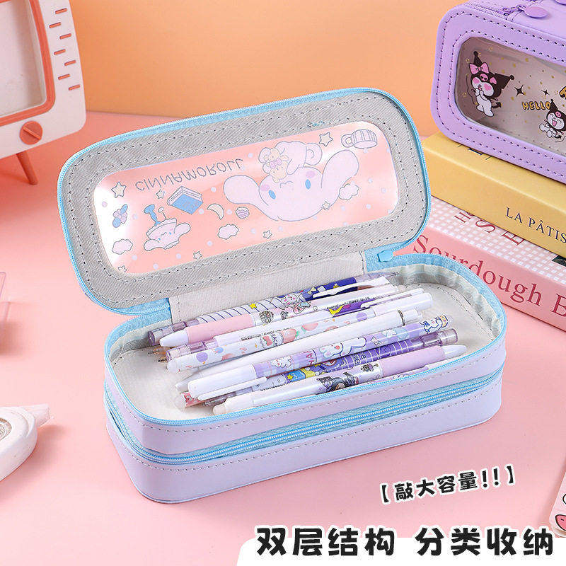 卡通可爱玉桂狗学生用铅笔盒简约小清新库洛米开窗透明双层文具盒