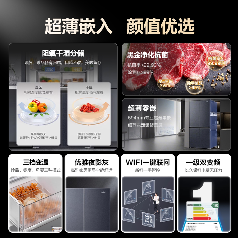 换新补贴海尔冰箱501升十字四门超薄零嵌入一级无霜家用官方正品