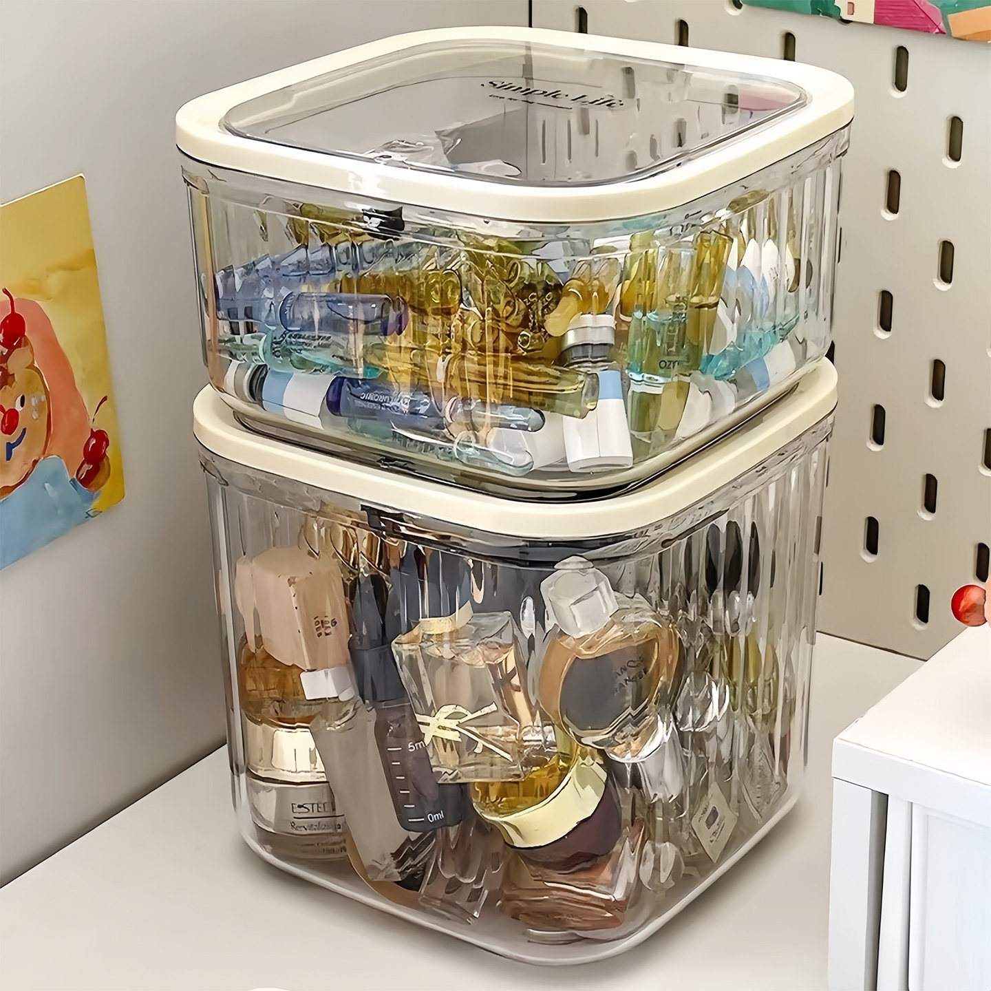 翻盖式桌面收纳盒透明亚克力防尘整理盒卧室宿舍办公室带盖收纳筐