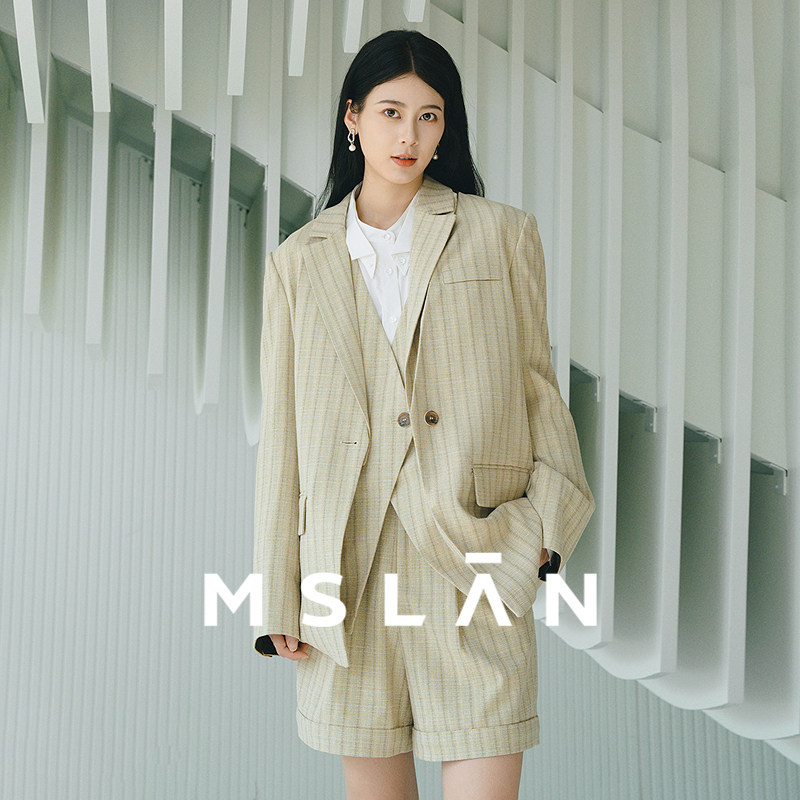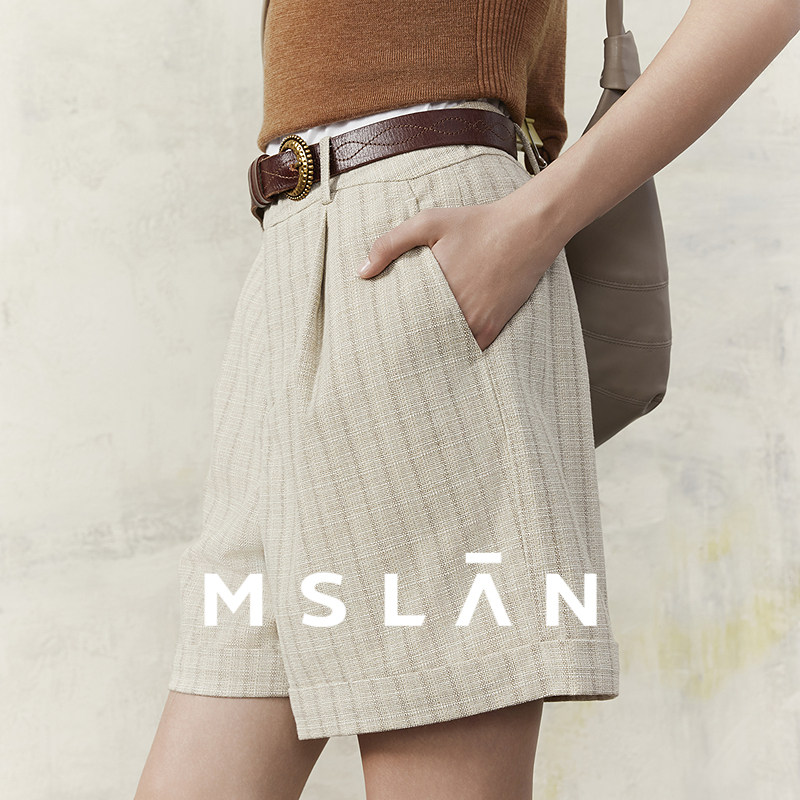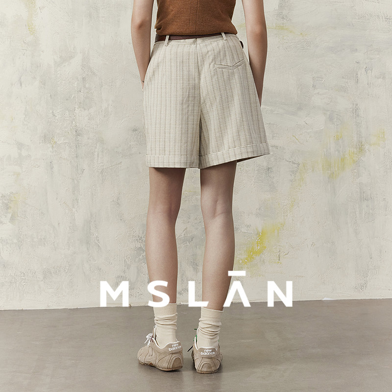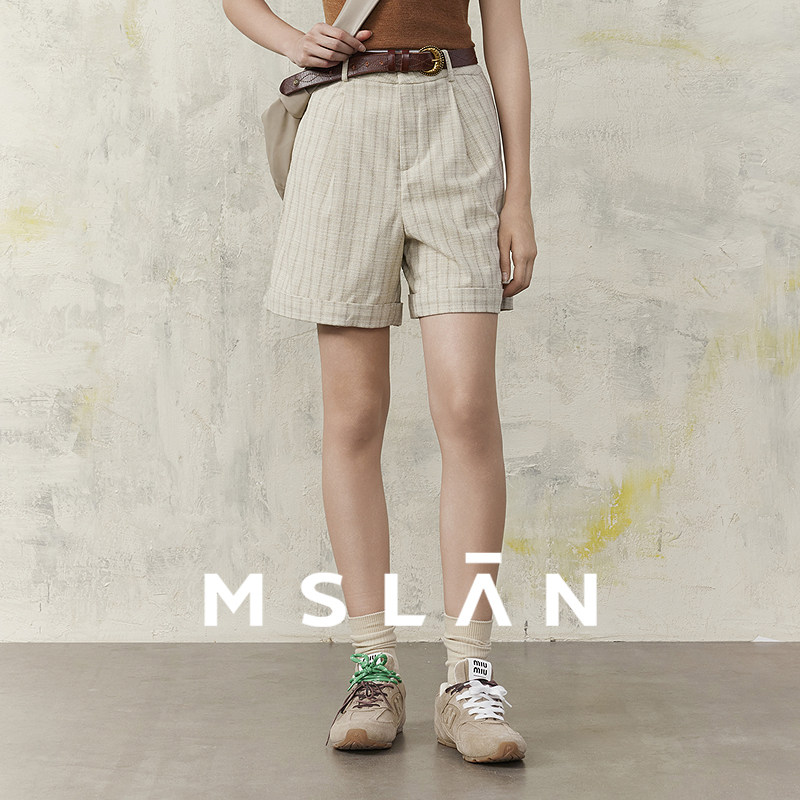 明星同款|MSLAN燕麦条纹 南法不规则腰头浅色条纹短裤MGAK123
