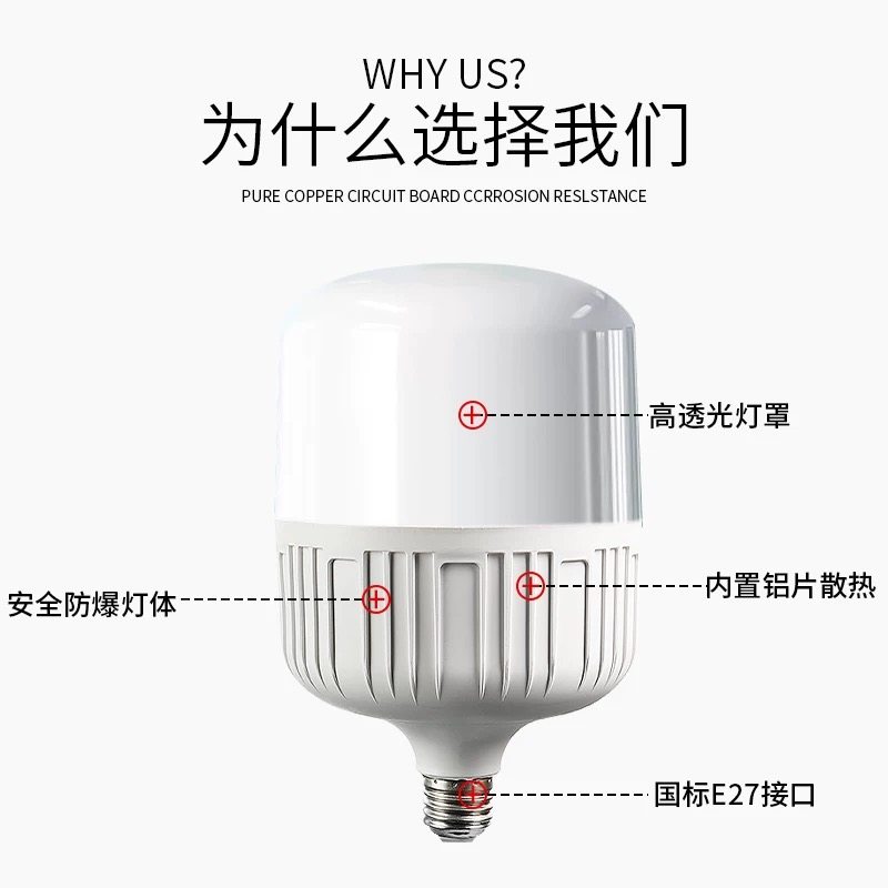 led灯泡超亮节能灯白光家用省电E27大螺口客厅室内灯照明圆柱形灯