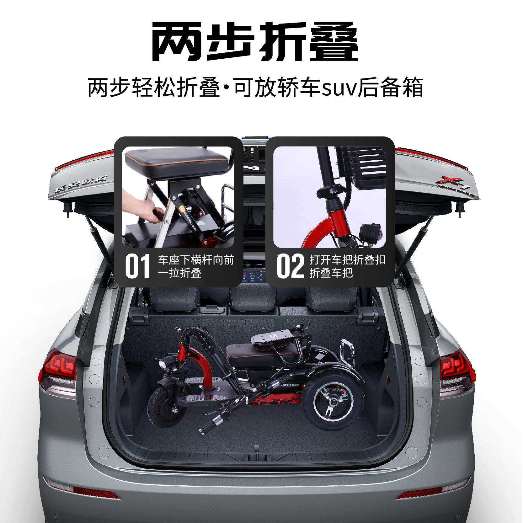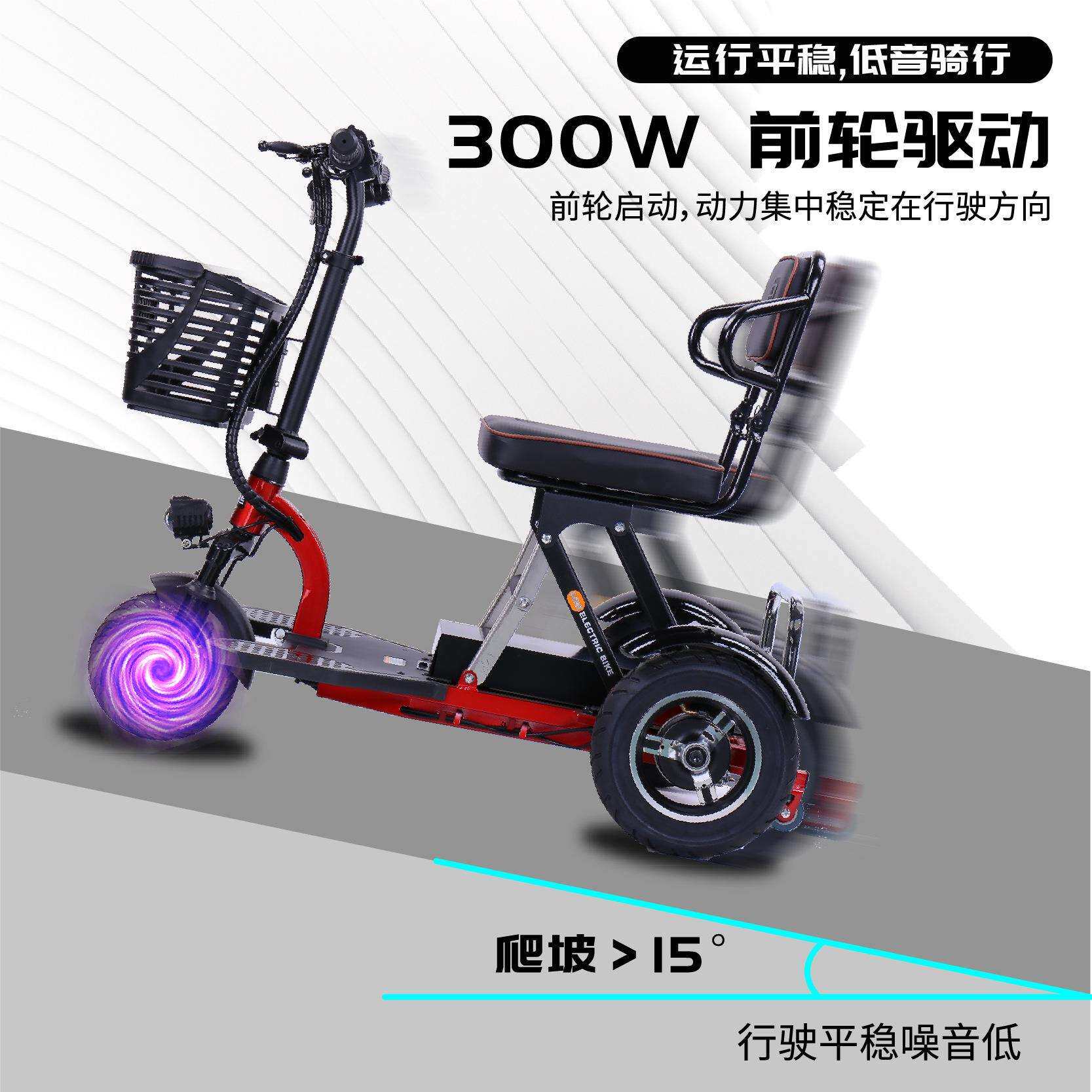 VIKE厂家跨境折叠电动三轮车老年代步休闲残疾人车成人迷你椅子