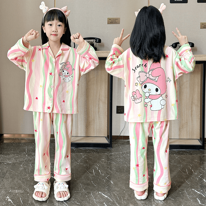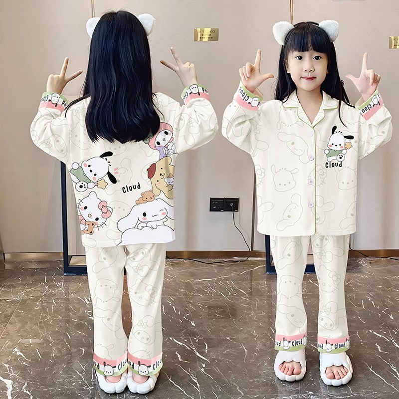 久岁伴儿童睡衣男春秋长袖宽松空调服薄款透气女童开襟家居服套装