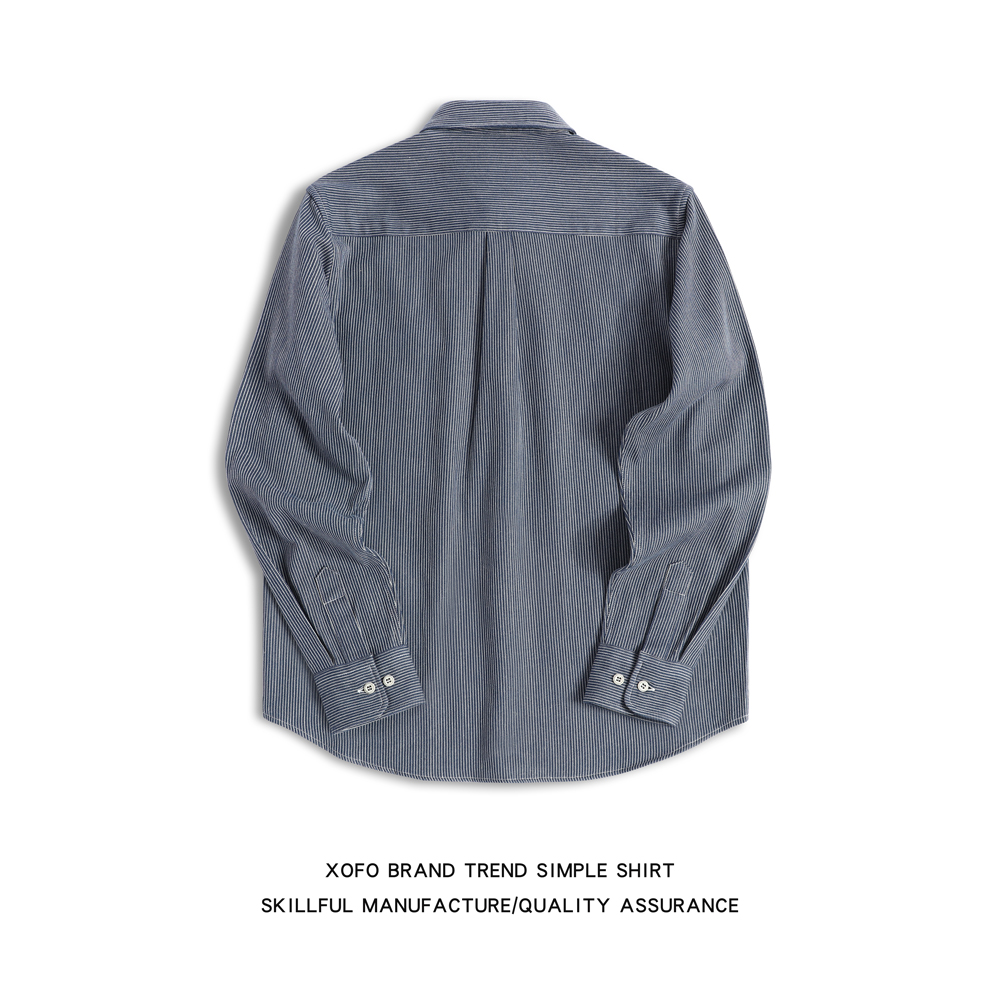 【定织条纹】秋季港风日系男内搭衬衫长袖男士外套休闲宽松衬衣