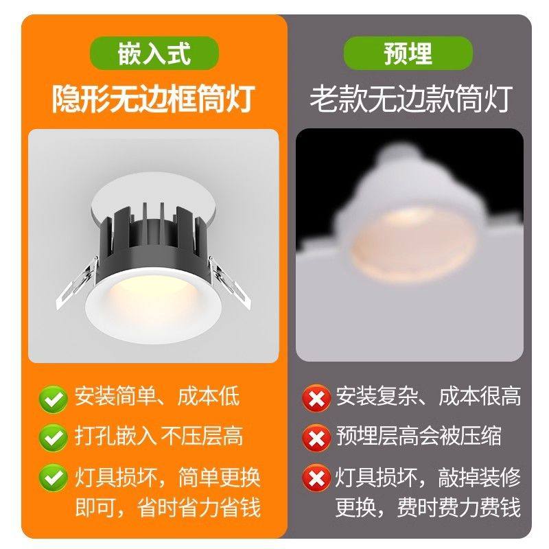 无边框筒灯LED嵌入式7.5开孔深杯防眩客厅家用天花灯智能无主灯