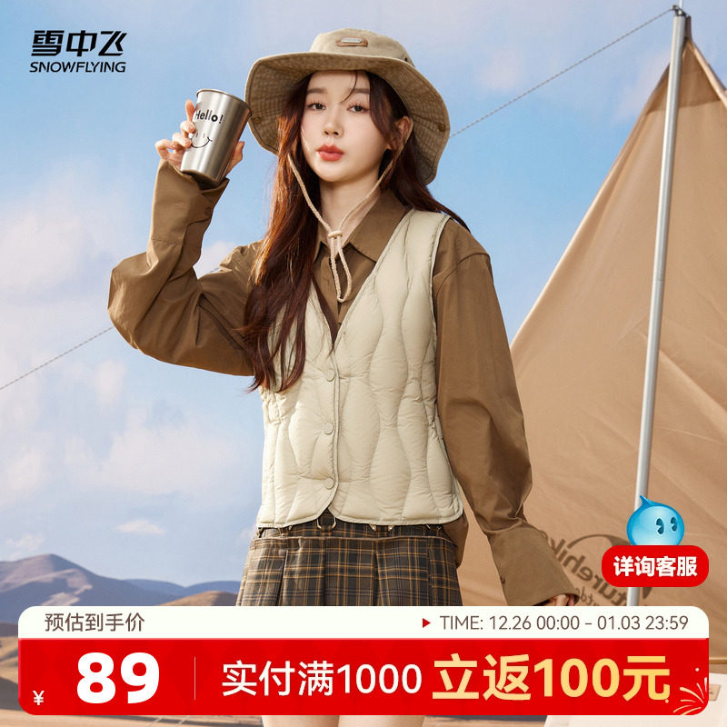 雪中飞2025冬新款女士V领羽绒背心马甲内胆好看时尚保暖叠穿轻薄S