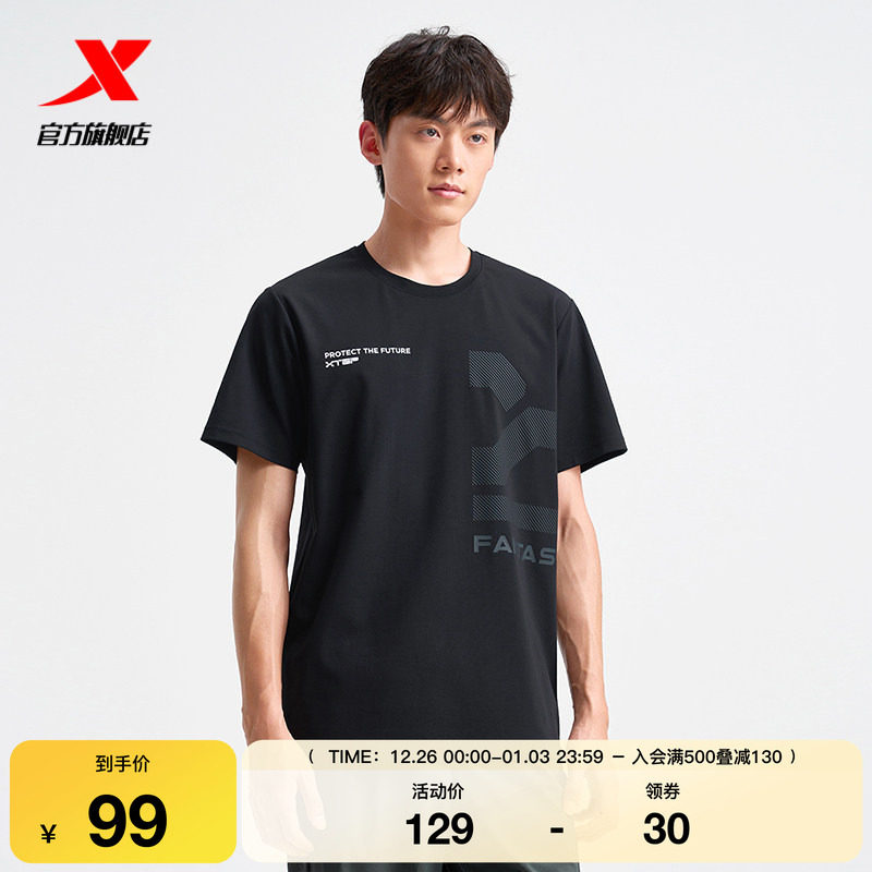 特步速干T男夏季宽松短袖冰丝户外跑步T恤透气上衣男士健身运动服