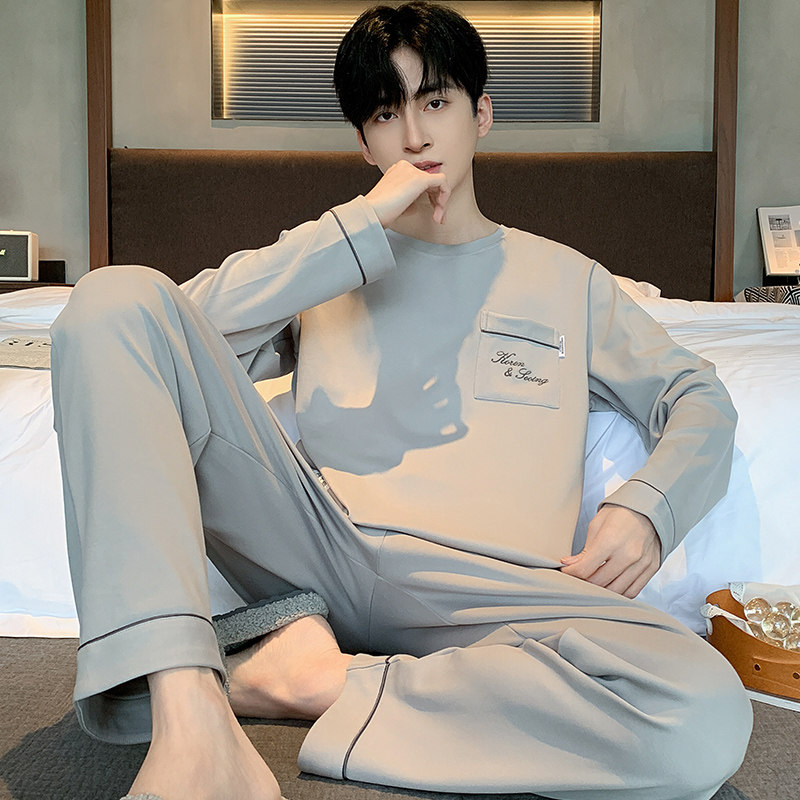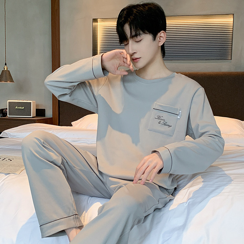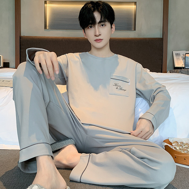 秋冬男士睡衣棉质长袖套装家居服男款大码简约休闲长裤外出穿着
