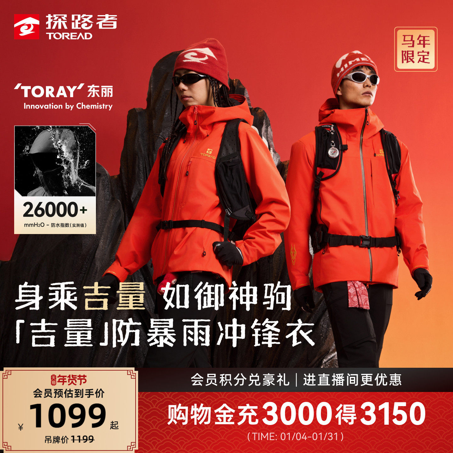 [吉量]探路者商场同款单冲男红色新年款东丽面料冲锋衣登山外套女