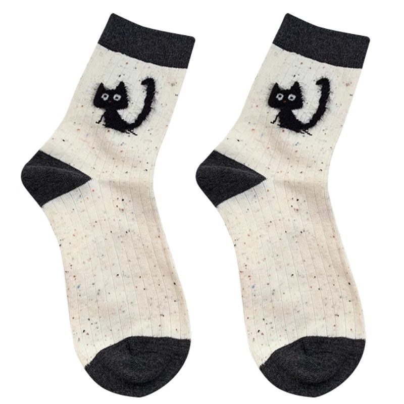 秋冬款卡通袜子纯棉女士可爱中筒袜日系秋冬猫咪植绒长袜优质时尚