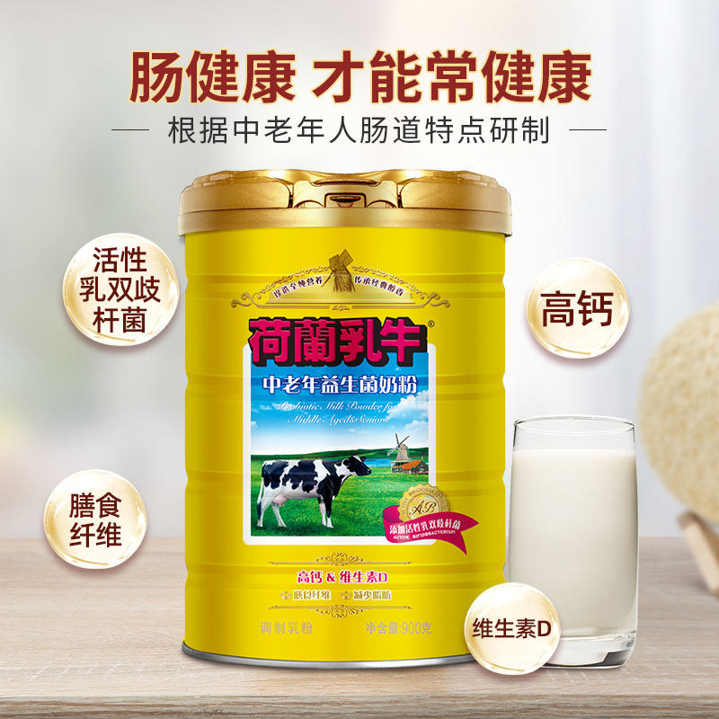 荷兰乳牛中老年益生菌奶粉成人高钙营养无蔗糖食品800g*2罐装官网