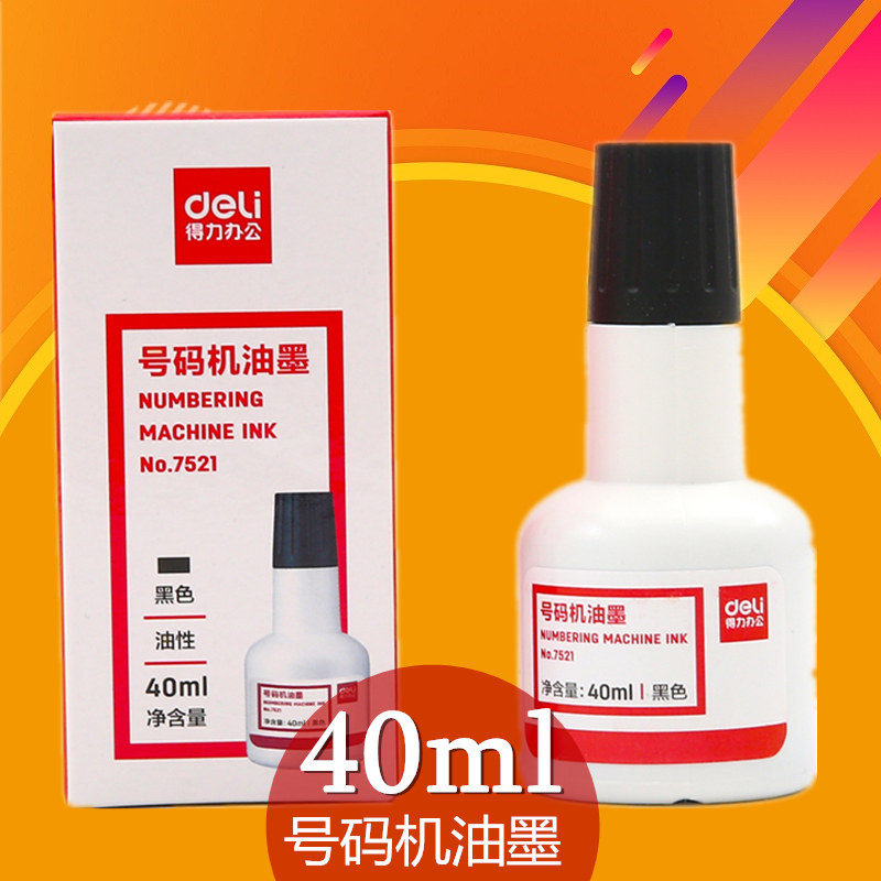 得力7521打码机油墨自动号码机油墨标价机油墨 40ml 得力自动号码机专用印油 40ML 黑色 号码机专用油墨