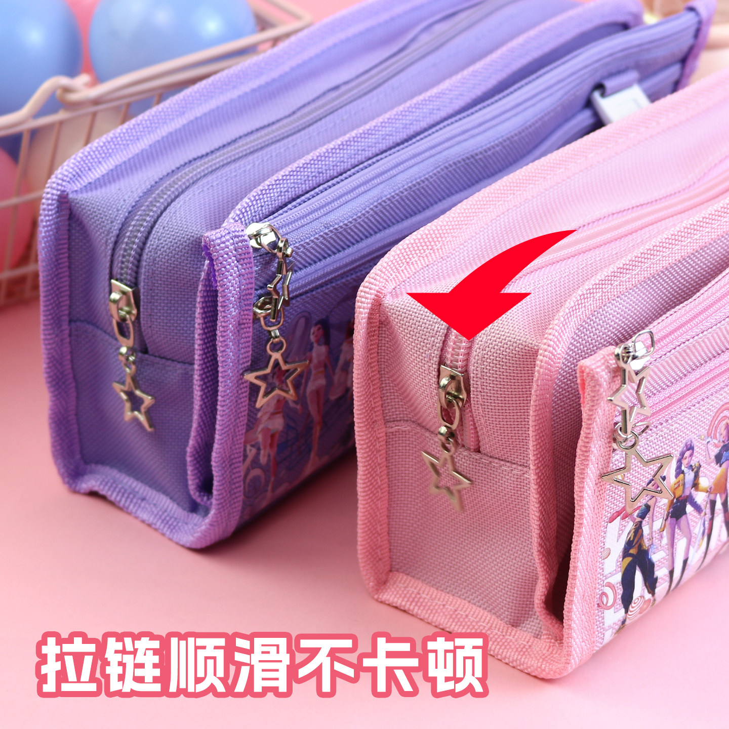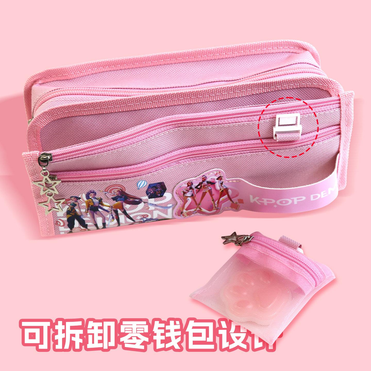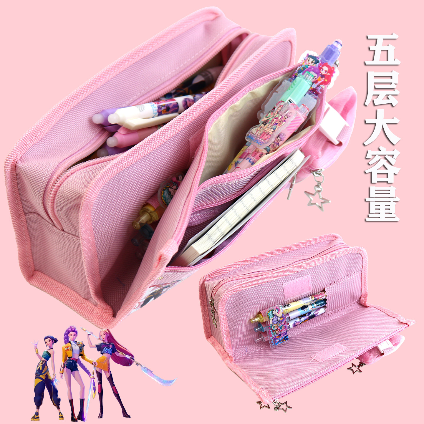 猎魔女团笔袋女孩小学生文具盒帆布大容量五层可爱铅笔盒带零钱包