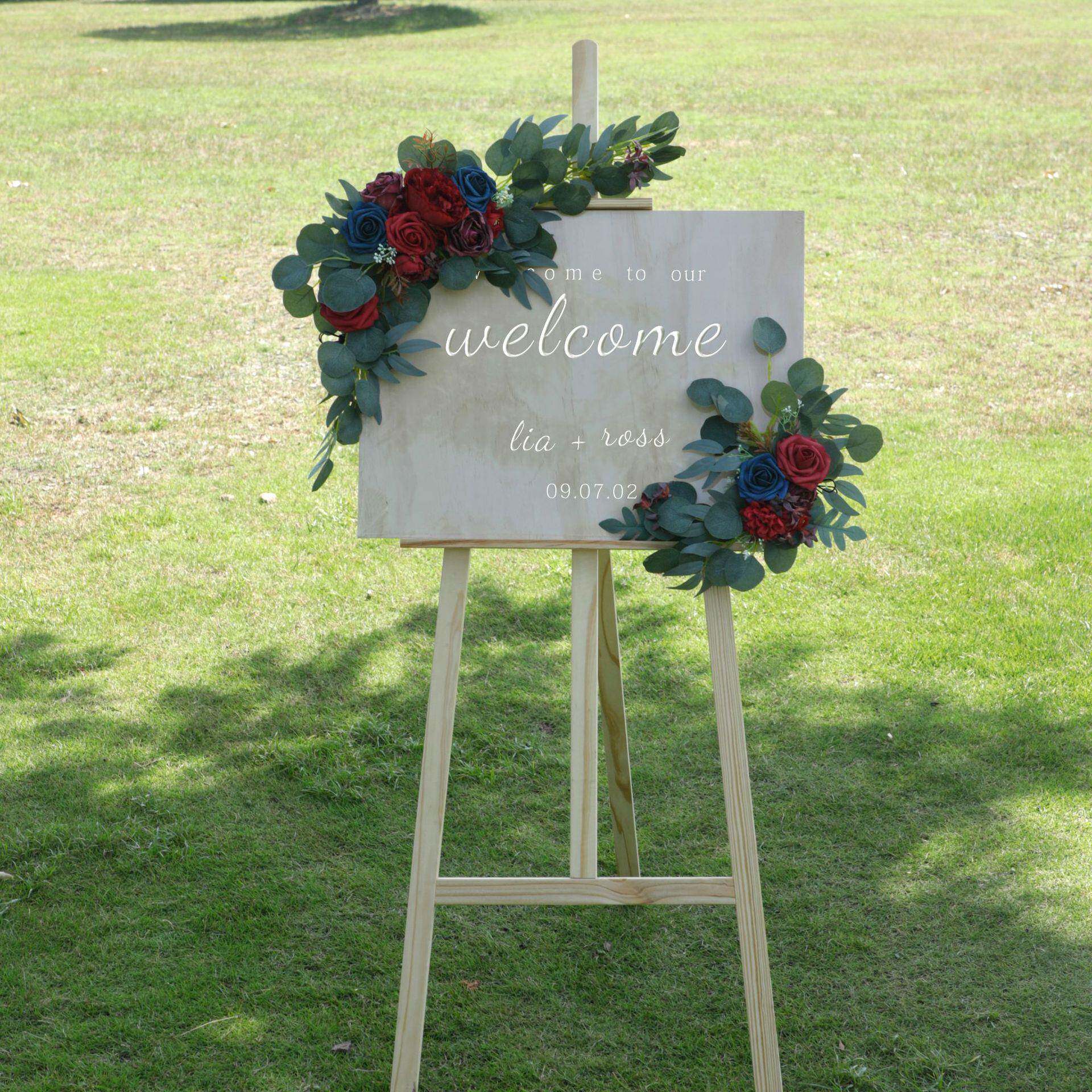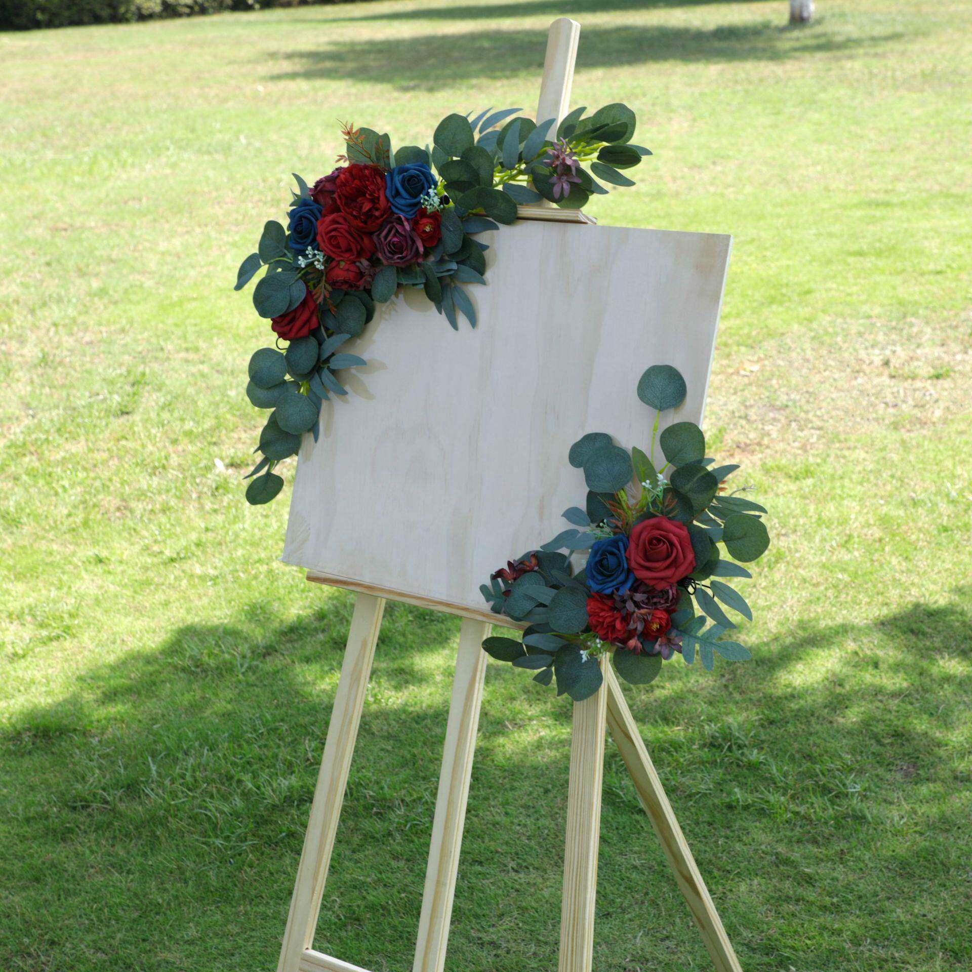 西式拱门花婚礼创意仿真花宴会水牌花指示牌迎宾牌花布置背景角花