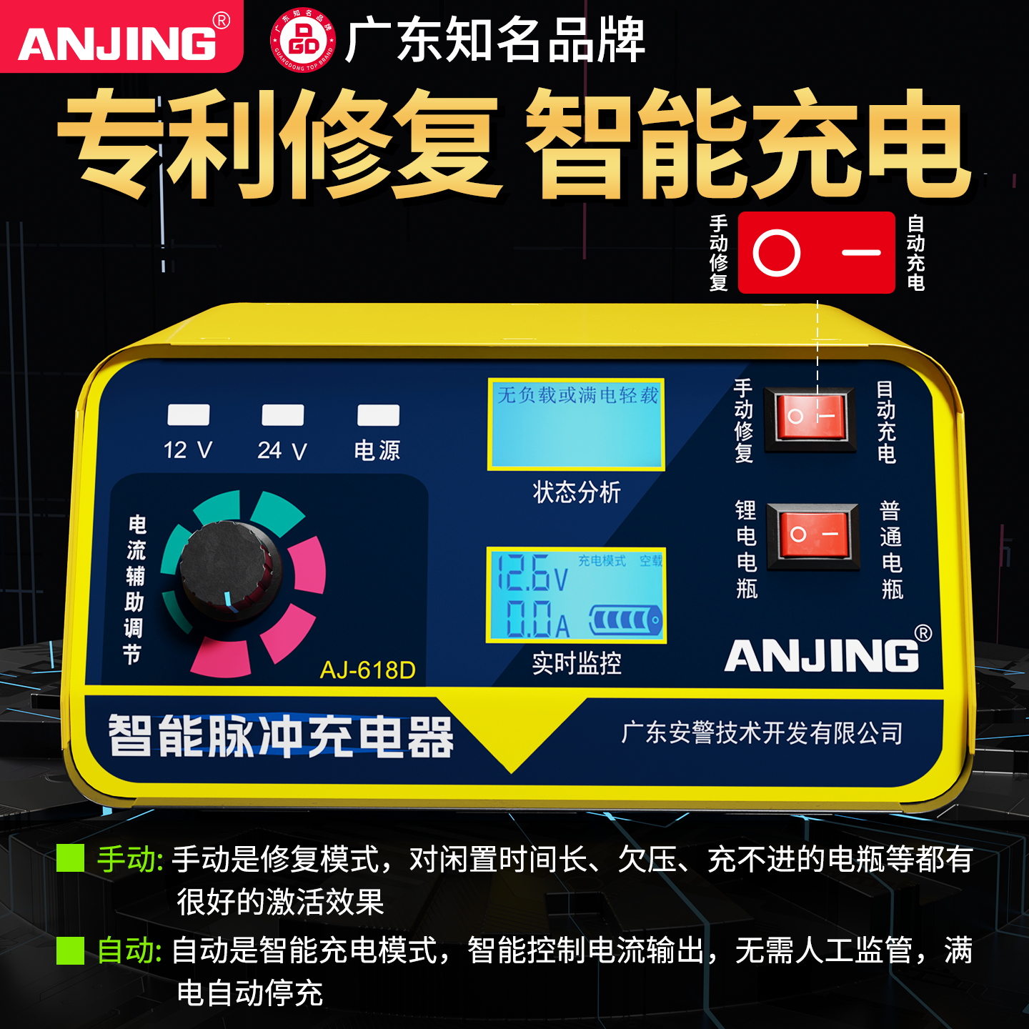 汽车电瓶充电器12V24V通用型智能纯铜脉冲修复全自动蓄电池充电机