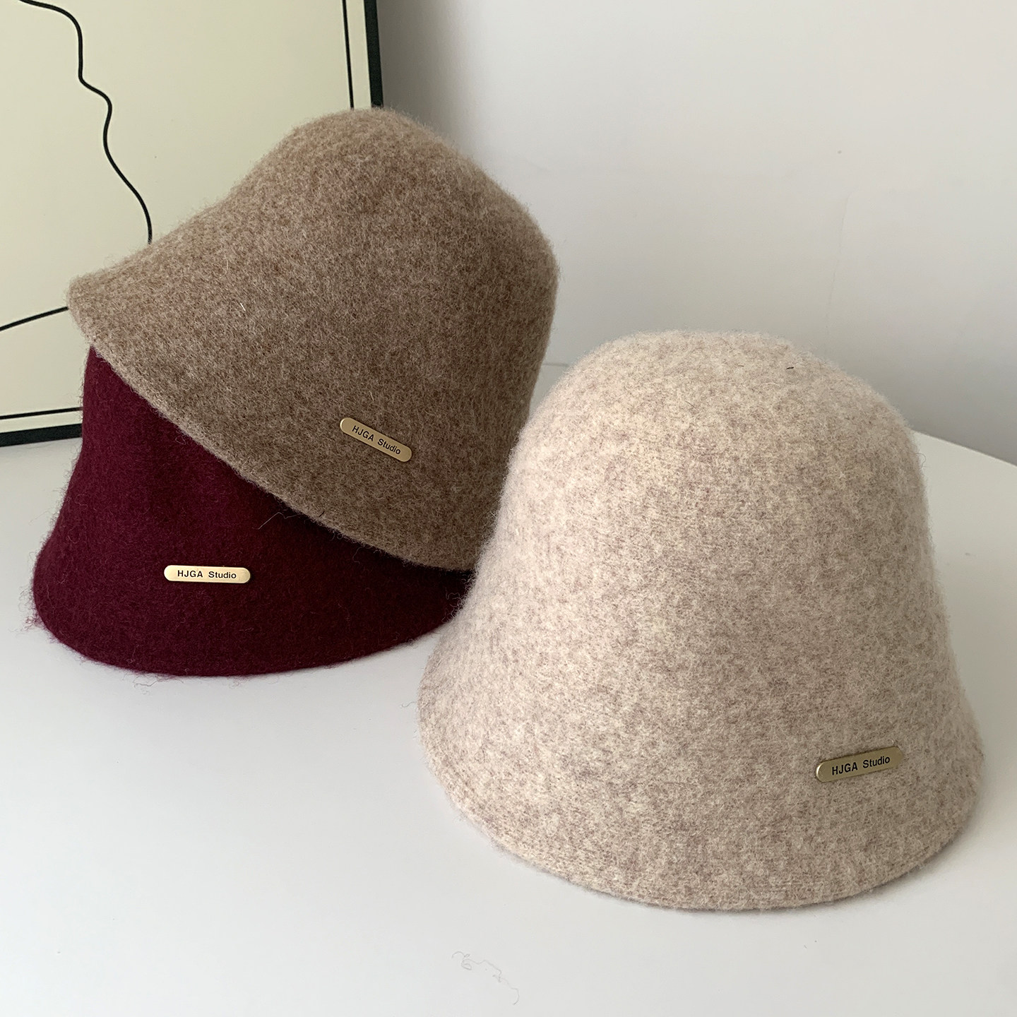 日系羊毛呢渔夫帽子女秋冬新款韩版百搭素颜遮脸水桶帽显脸小盆帽