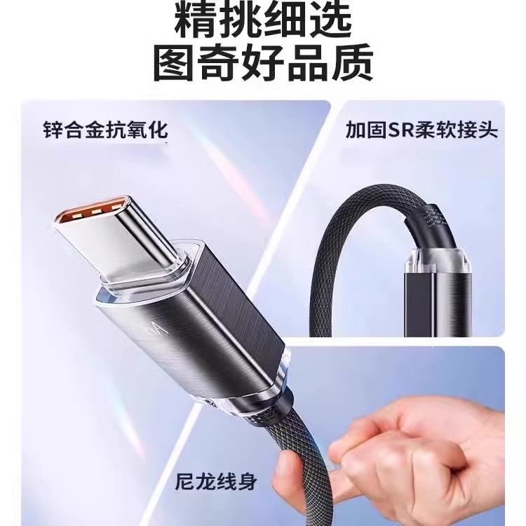 toocki图奇type-c数据线6A充电线适用oppo华为mate60pro器66w超级快充线5A手机typc线usb转c口2米安卓闪充tpc