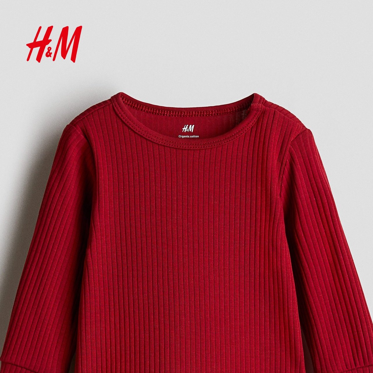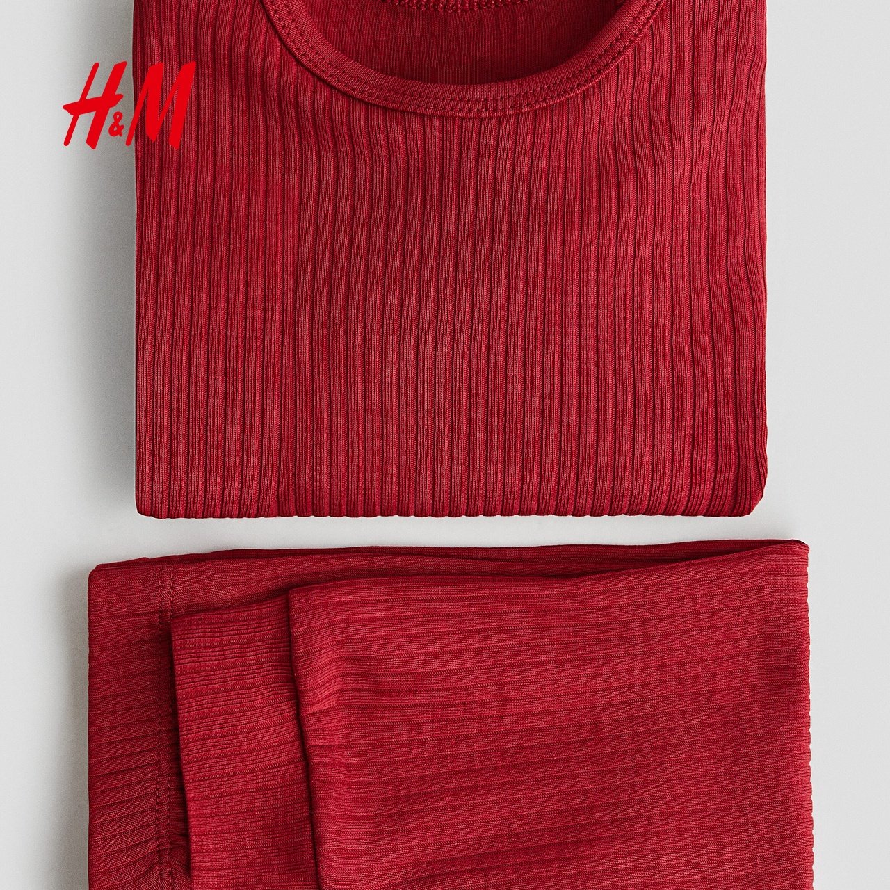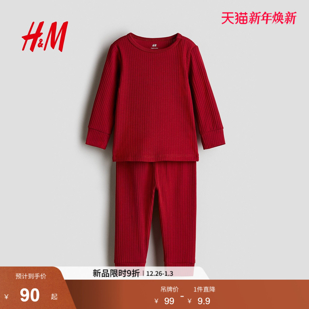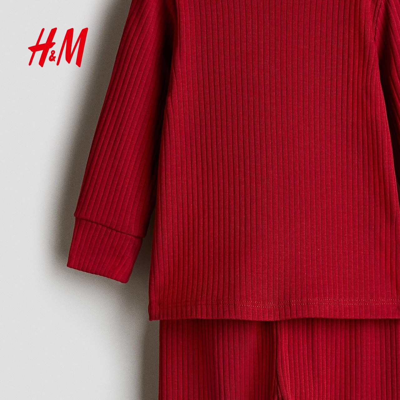 HM童装男婴女婴套装冬季罗纹棉质红色新年长袖长裤睡衣0867135