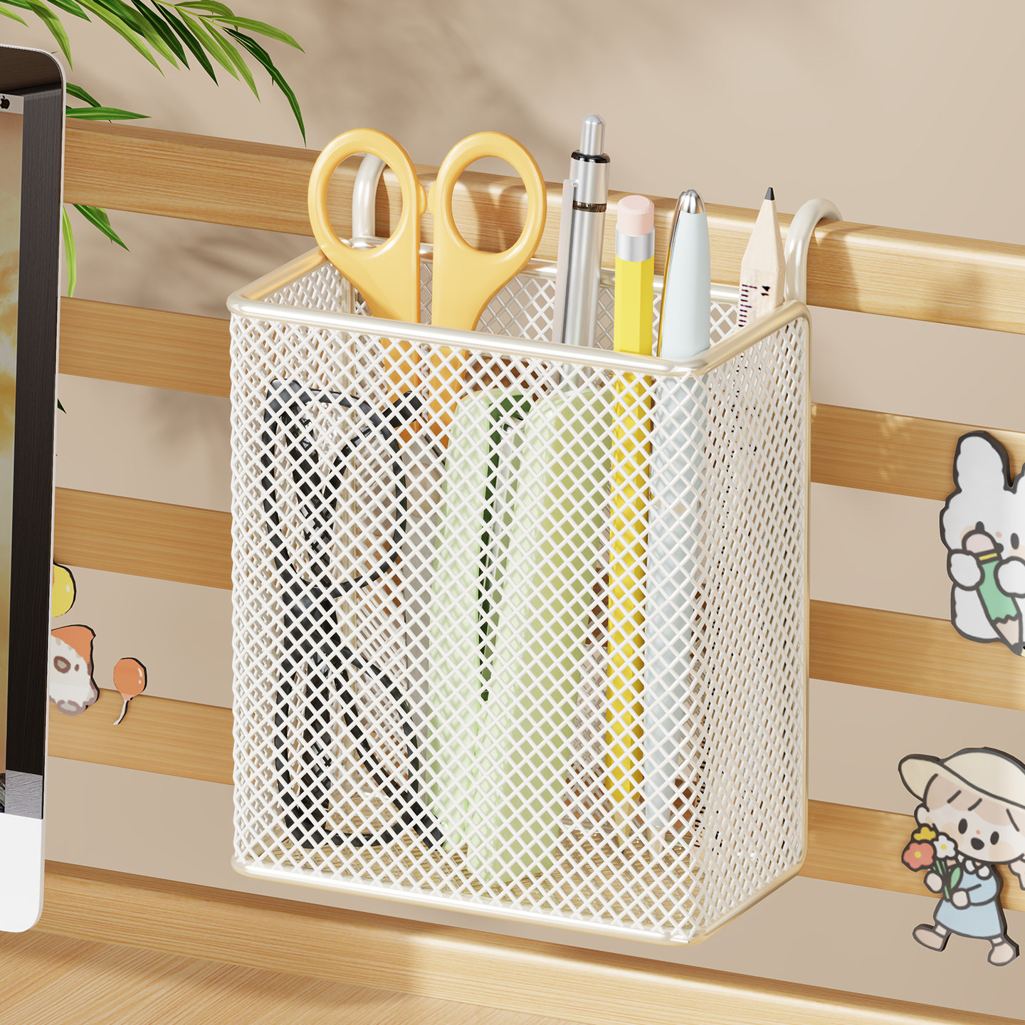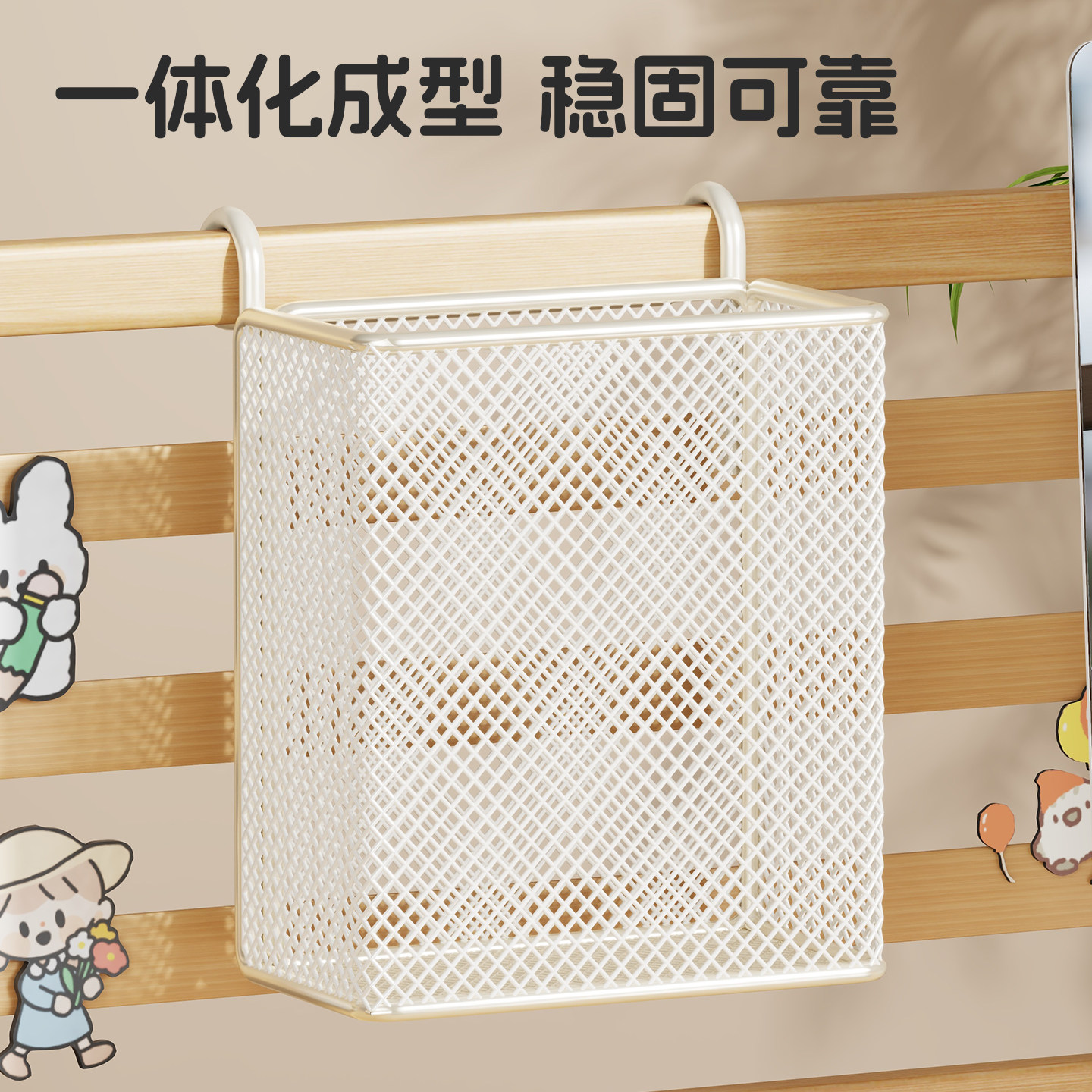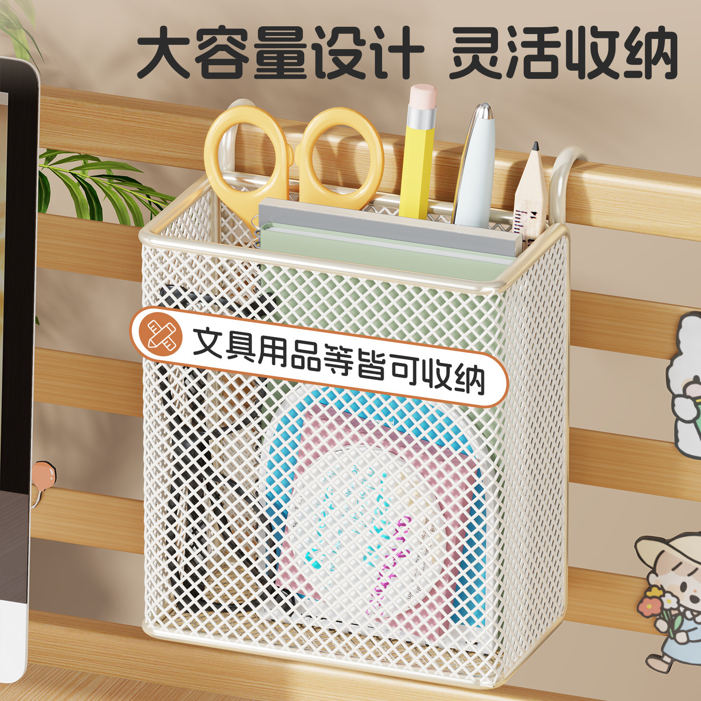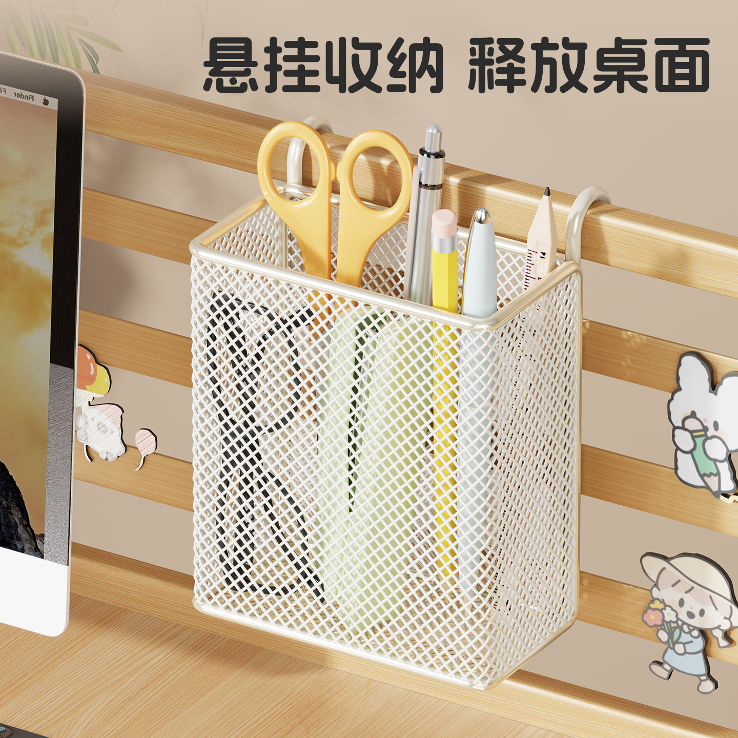 办公桌隔板屏风工位悬挂式笔桶创意多功能金属笔筒收纳盒办公室整理铁网置物筐学生宿舍神器床边挂篮储物架子