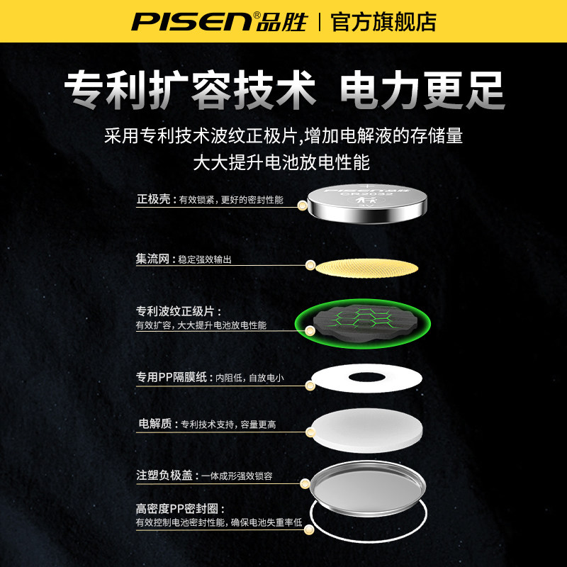 品胜CR2032/2025/2016纽扣电池手表电子秤温度计电脑主板汽车遥控器钥匙适用宝马奔驰大众正品大容量耐用wh