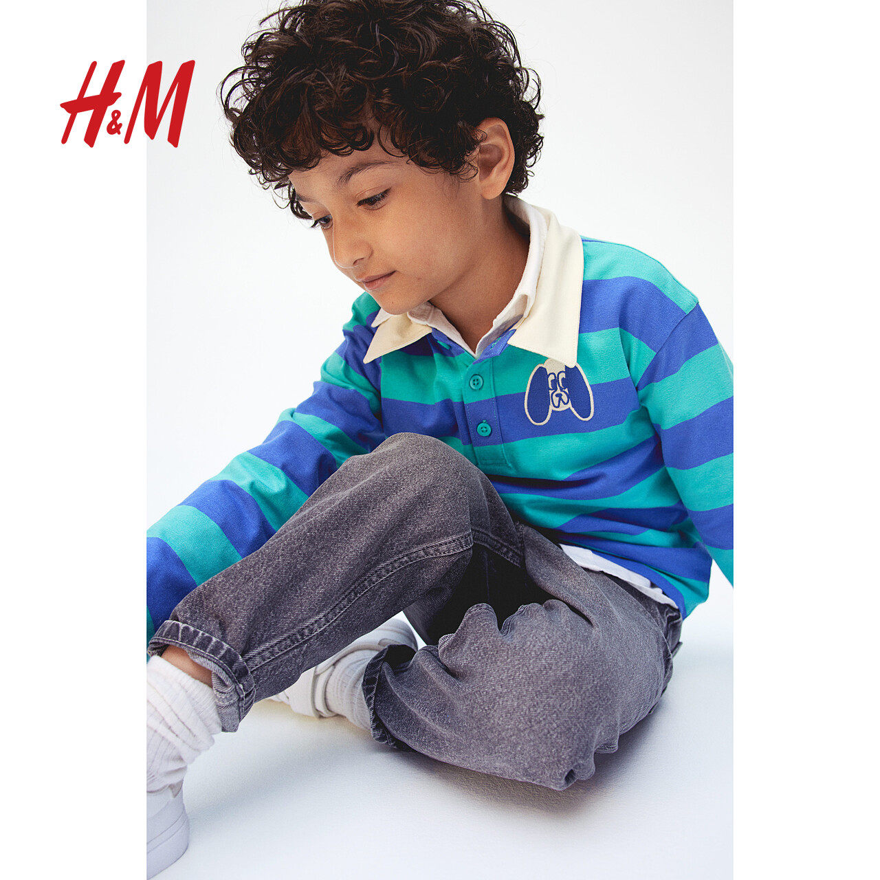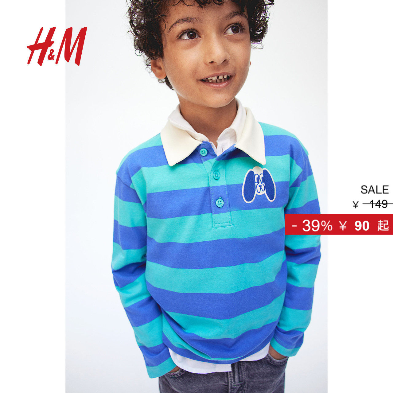 HM童装儿童男童POLO衫棉质翻领宽松长袖条纹洋气橄榄球衫1248298