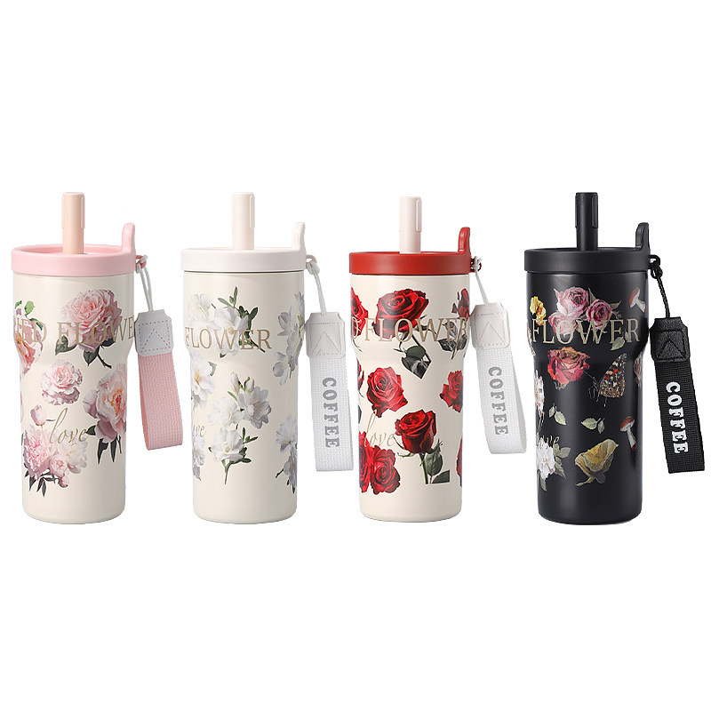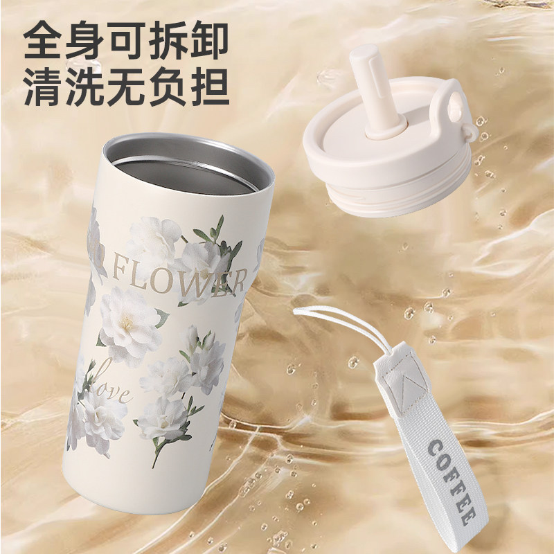 陶瓷内胆保温杯女生高颜值咖啡杯子新款便携吸管水杯外出