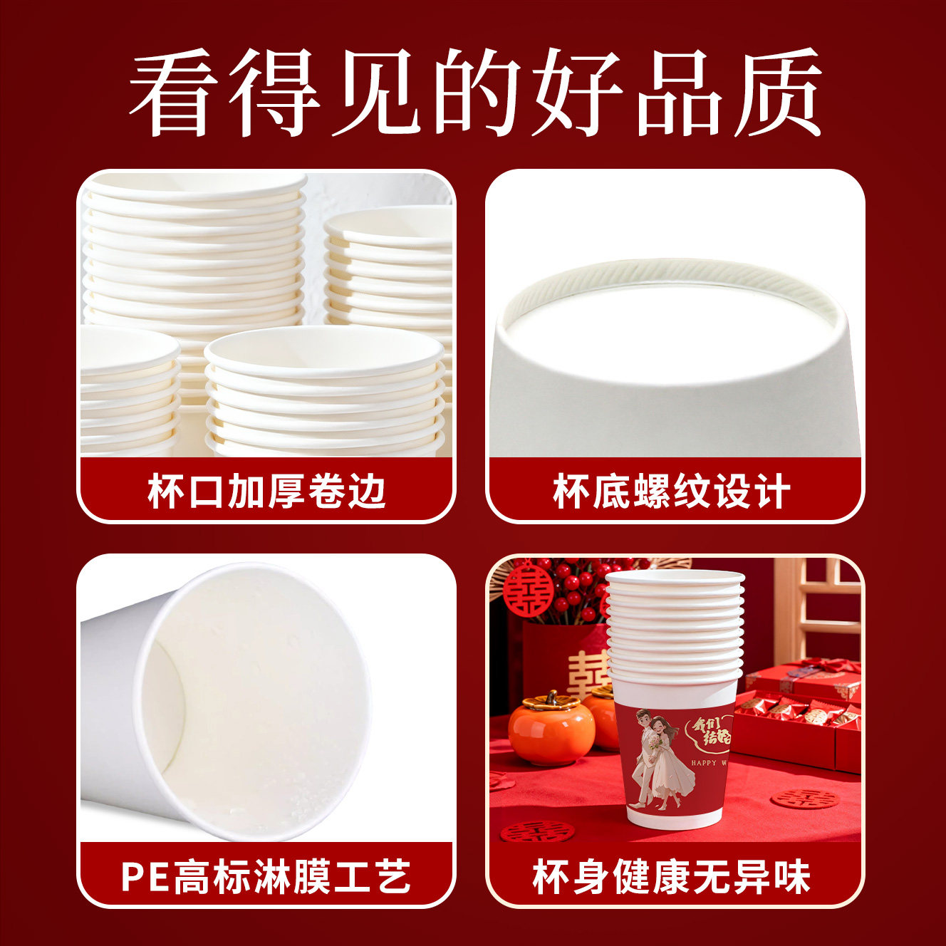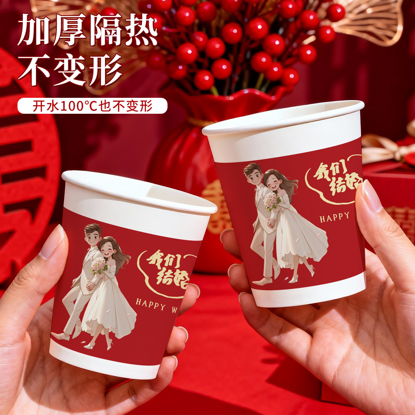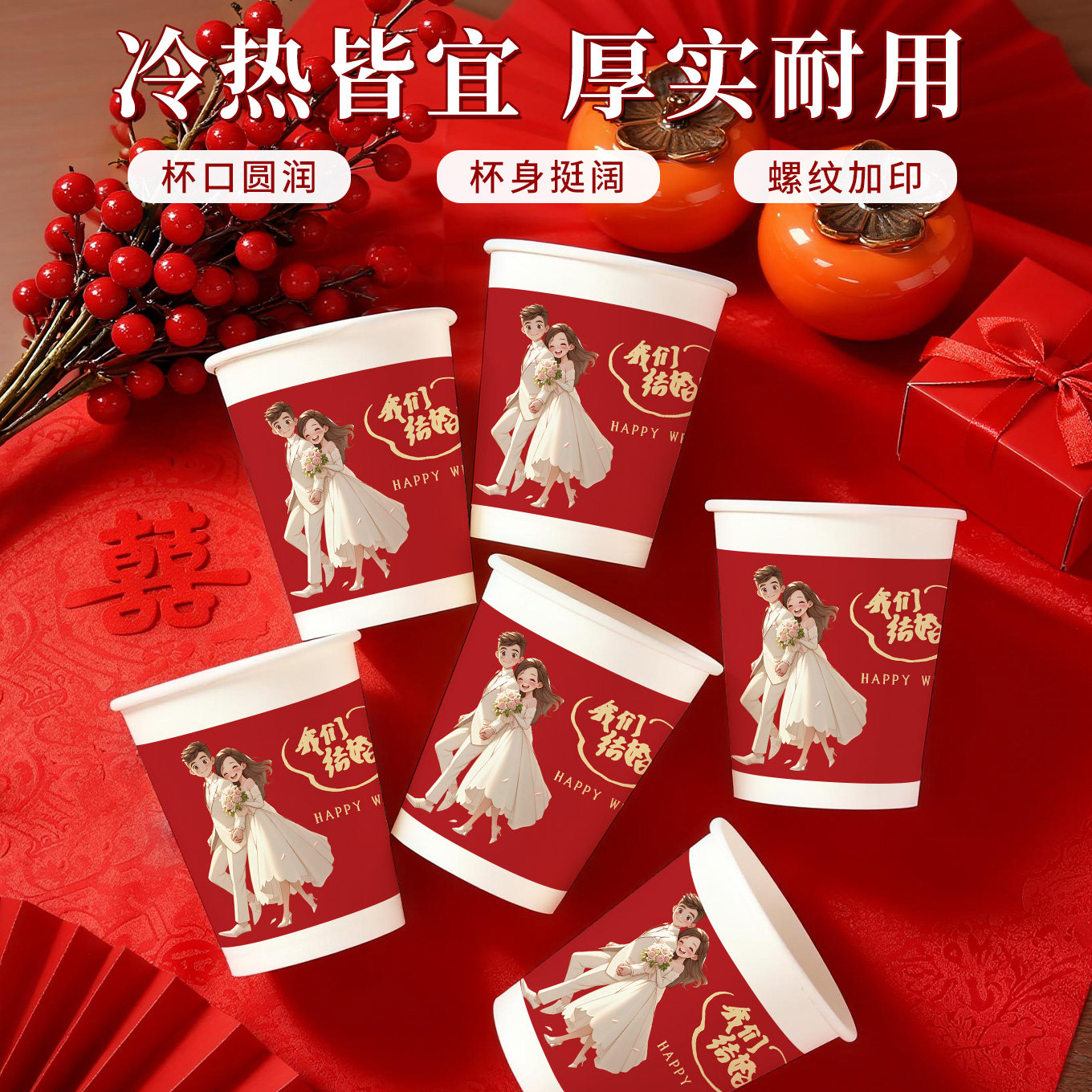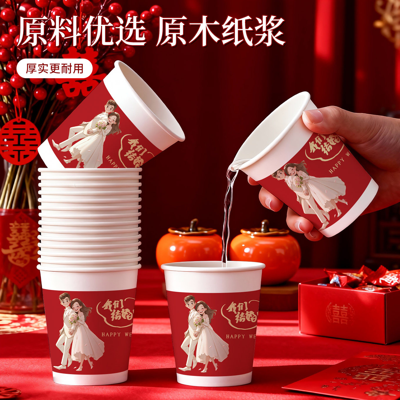 一次性纸杯结婚喜杯子食品级家用加厚礼物敬酒杯婚宴婚礼用品大全