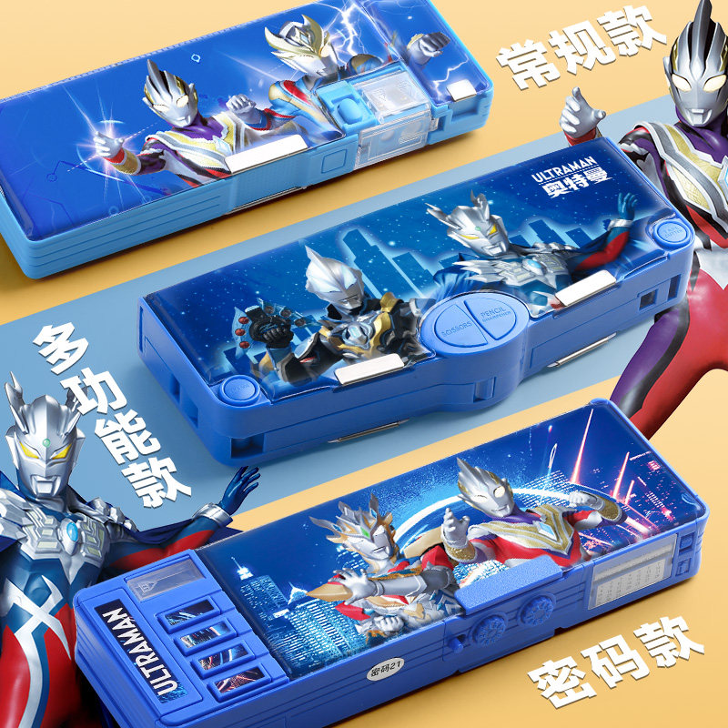 奥特曼文具盒多功能铅笔盒幼儿园儿童男孩款机关密码锁一年级小学生笔盒笔袋男童学生用男孩文具套装学习用品