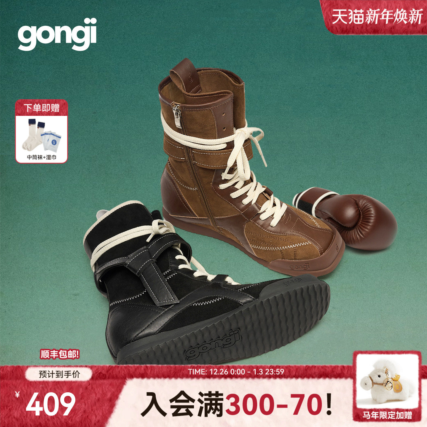 GONGJI马丁靴女2025新款拳击靴美拉德西部靴子显瘦英伦风德训短靴