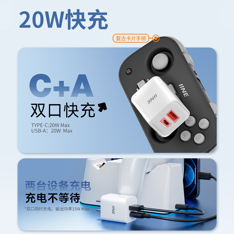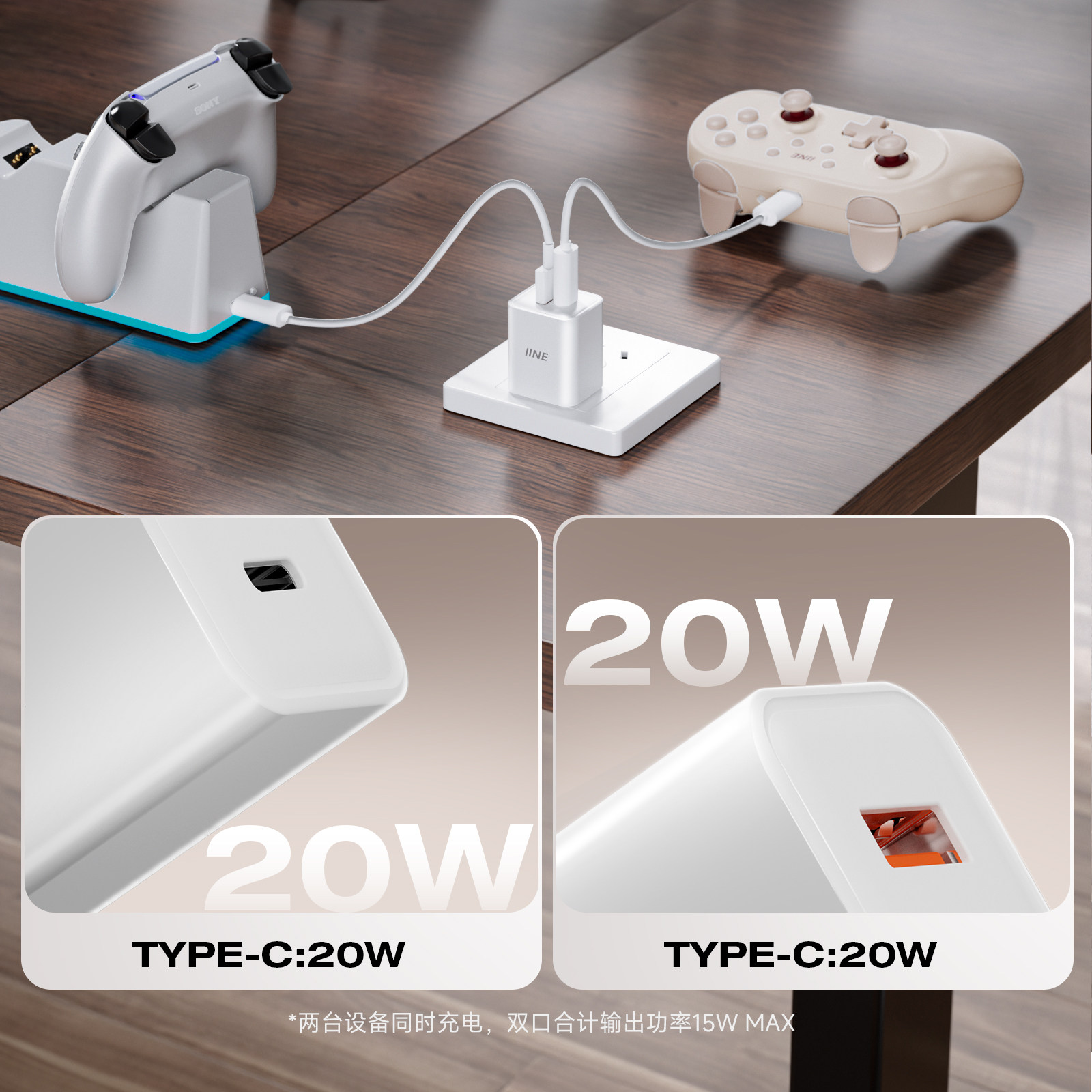 良值 (IINE)20W充电器PD快充双口PS5充电座PRO游戏手柄Switch主机