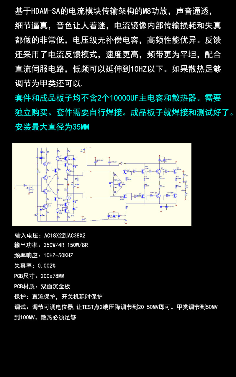 M8 电流镜像传输型高速低失真HIFI级大功率功放板 音质通透细腻自