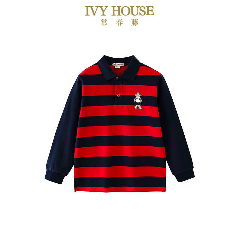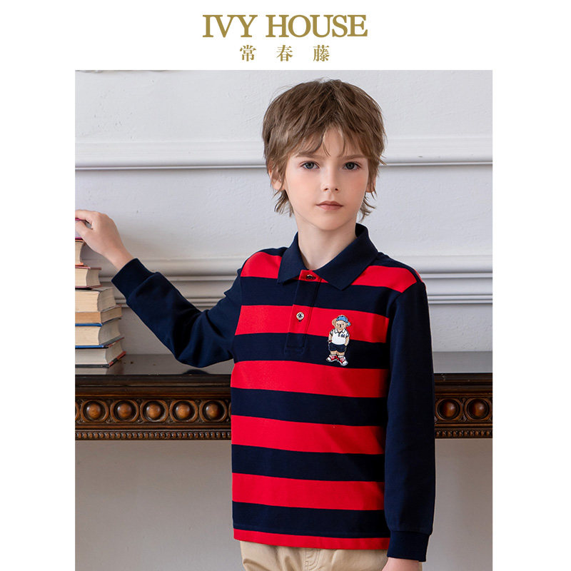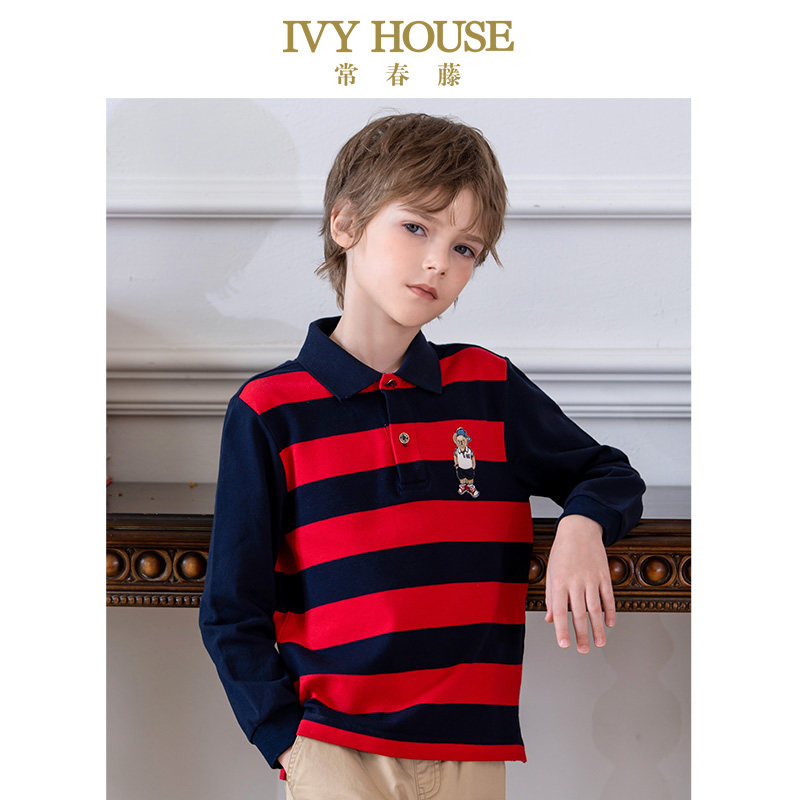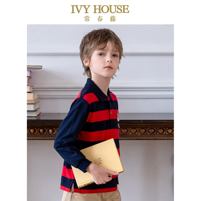 IVY HOUSE常春藤儿童装男童2025秋季新款长袖条纹POLO衫T恤亲子装