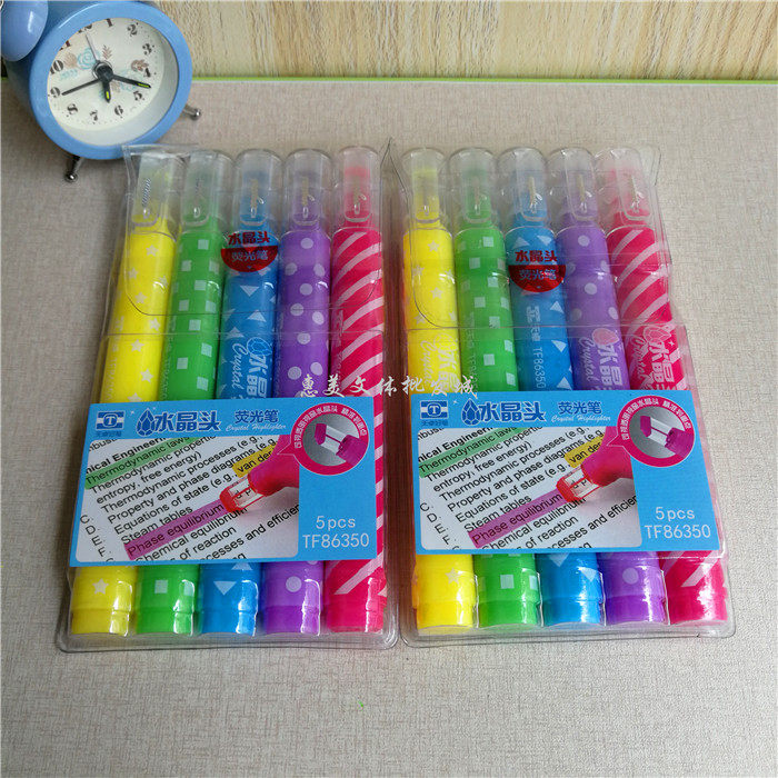 包邮 天卓水晶头荧光笔 重点标记笔大容量彩色笔奖品5支装TF86350
