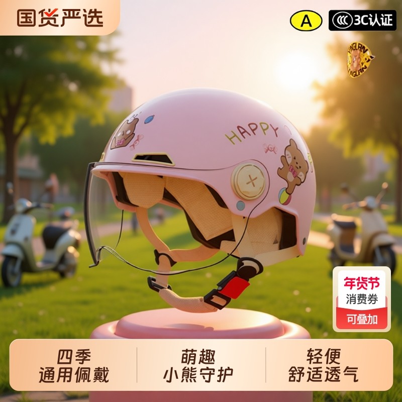 新国标3C认证电动摩托车头盔男女四季通用冬季电瓶儿新款童防晒帽