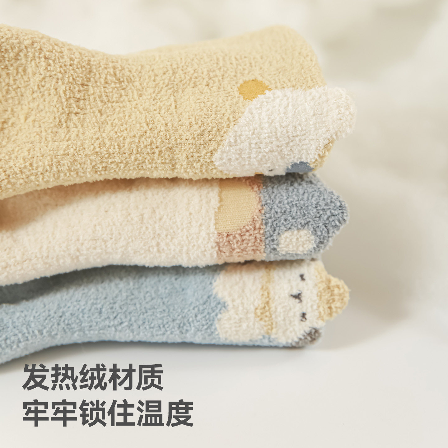 贝肽斯婴儿袜子秋冬加绒新生儿宝宝加厚中筒袜男女儿童珊瑚绒袜子