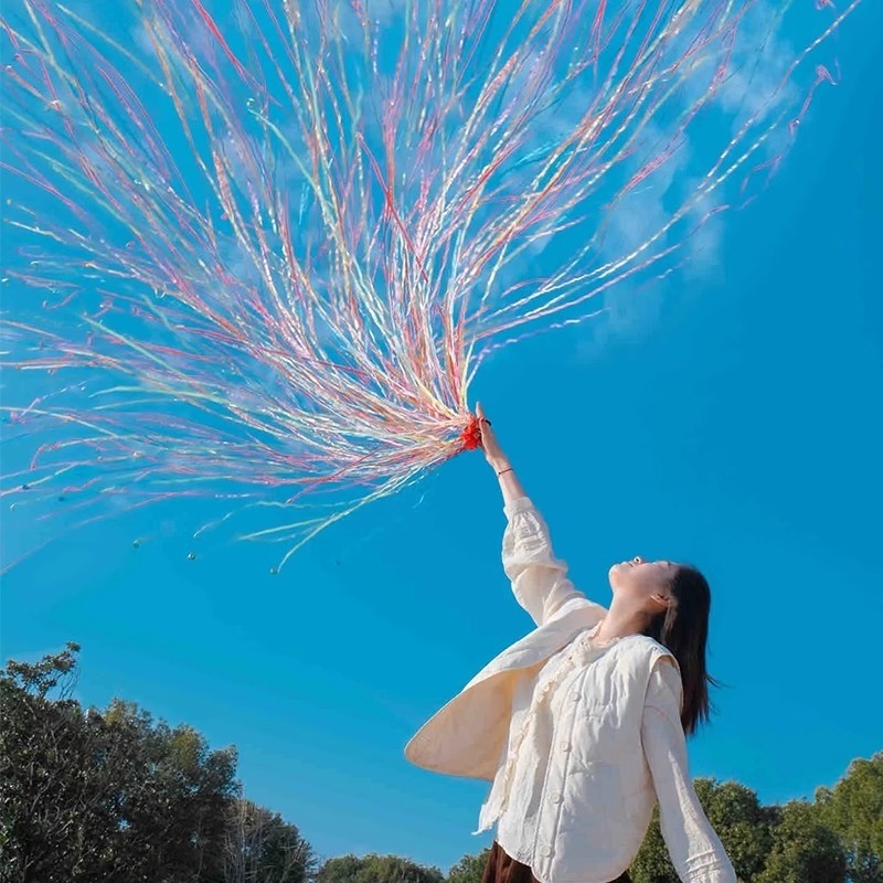 手抛彩带生日手抛彩带免打扫手扔拉炮手环蜘蛛丝婚礼花飘带拍照氛