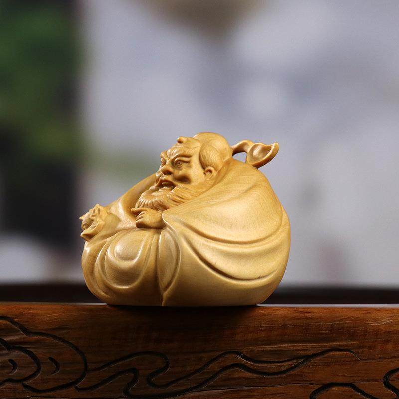 黄杨木雕有福钟馗天师手把件木质人物工艺品中式家居装饰摆件
