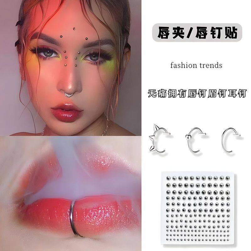 假眉钉贴免打孔唇钉鼻钉银色唇珠无洞饰品脸部贴钻钻石贴纸925银