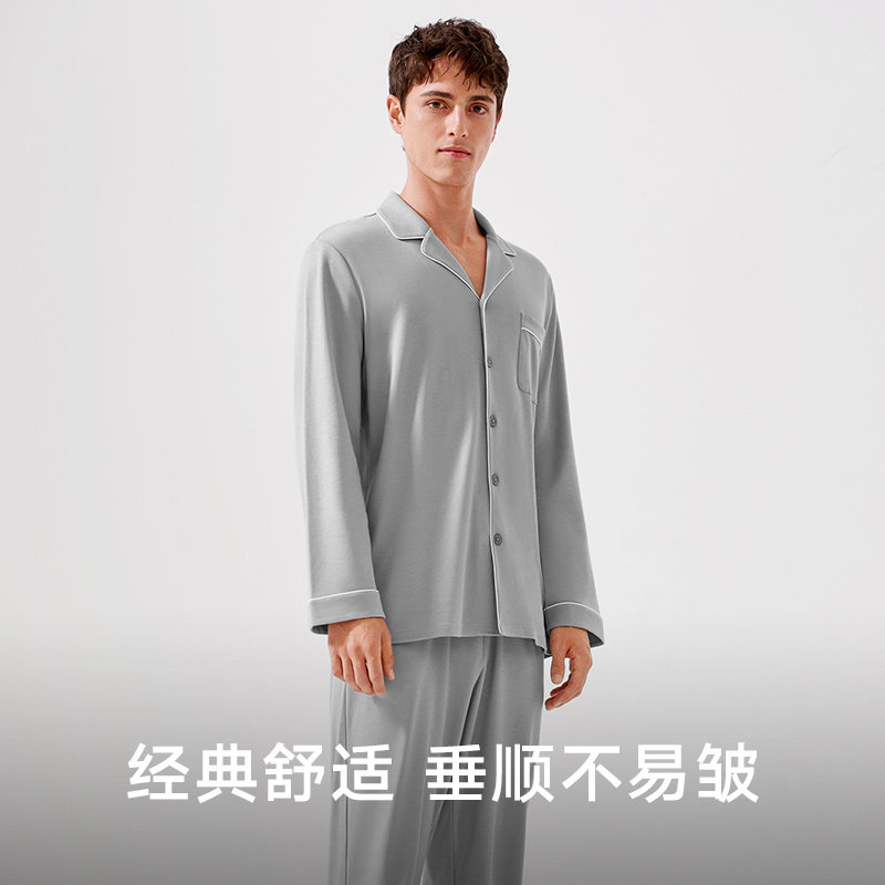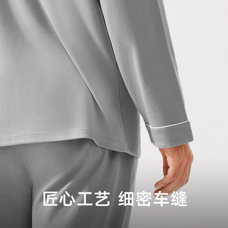 曼妮芬男家居服睡衣睡裤套装开襟翻领长袖长裤舒适起居服20320636