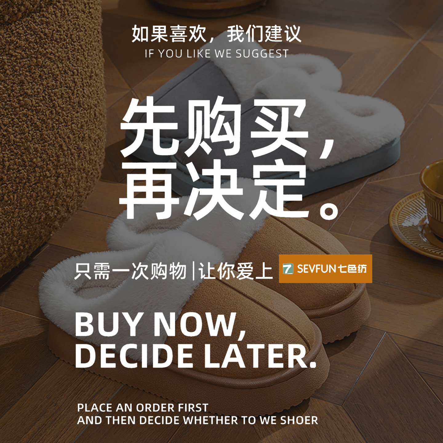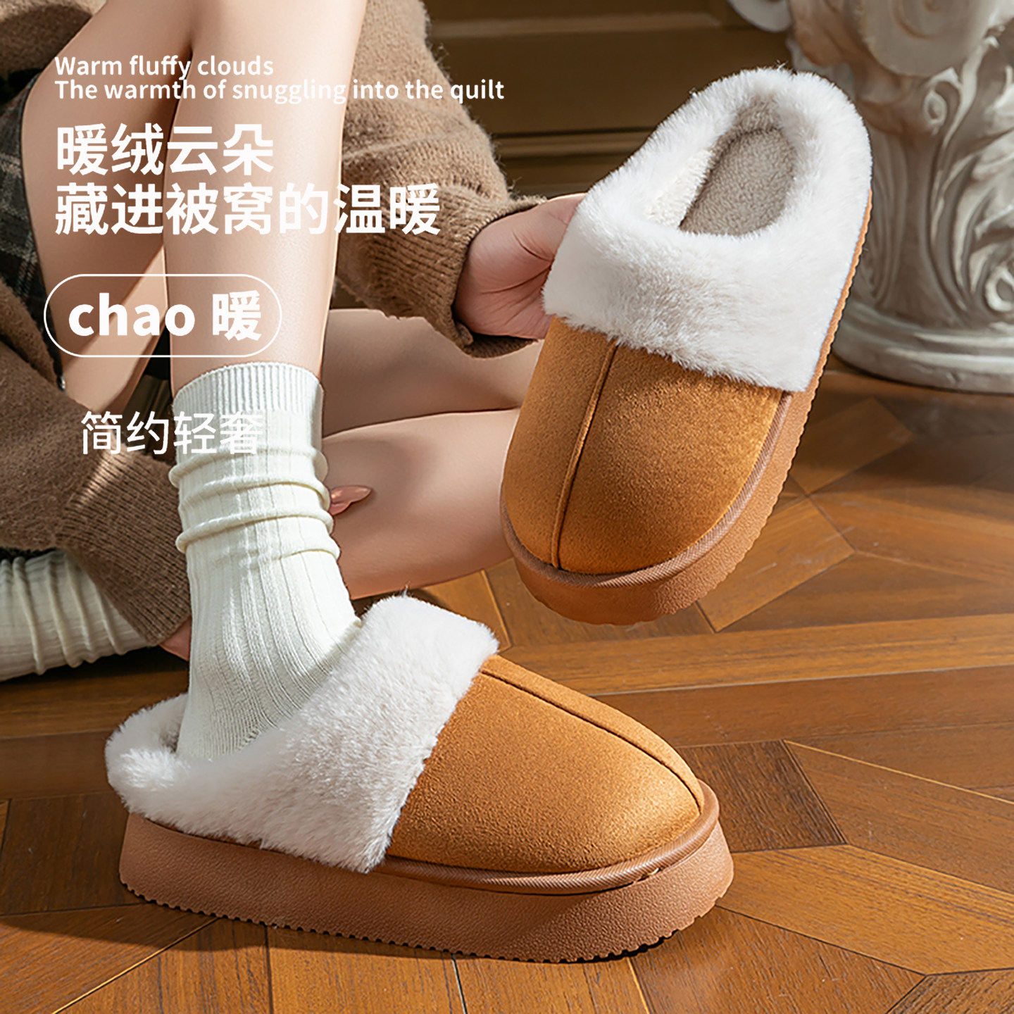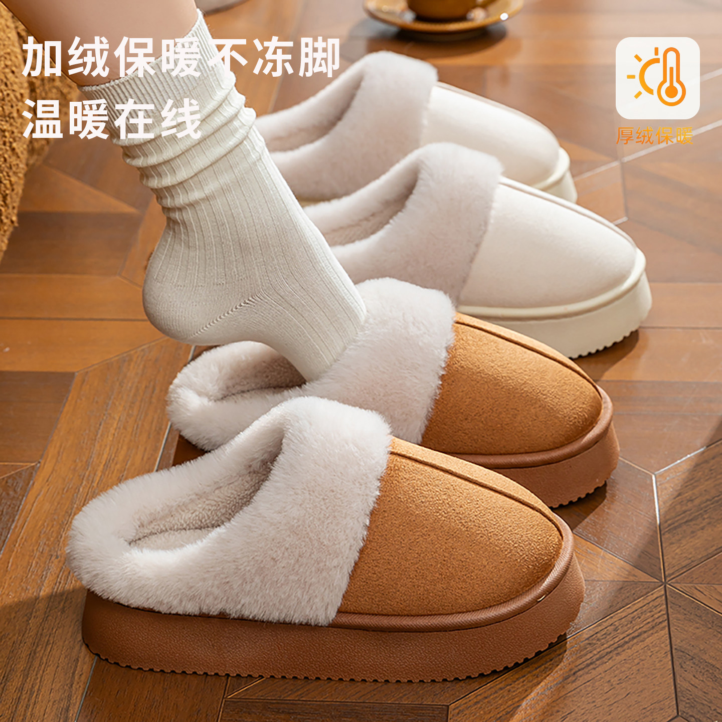 七色纺居家厚底棉拖鞋女新款2025冬季防滑加绒室内棉鞋不臭脚拖鞋