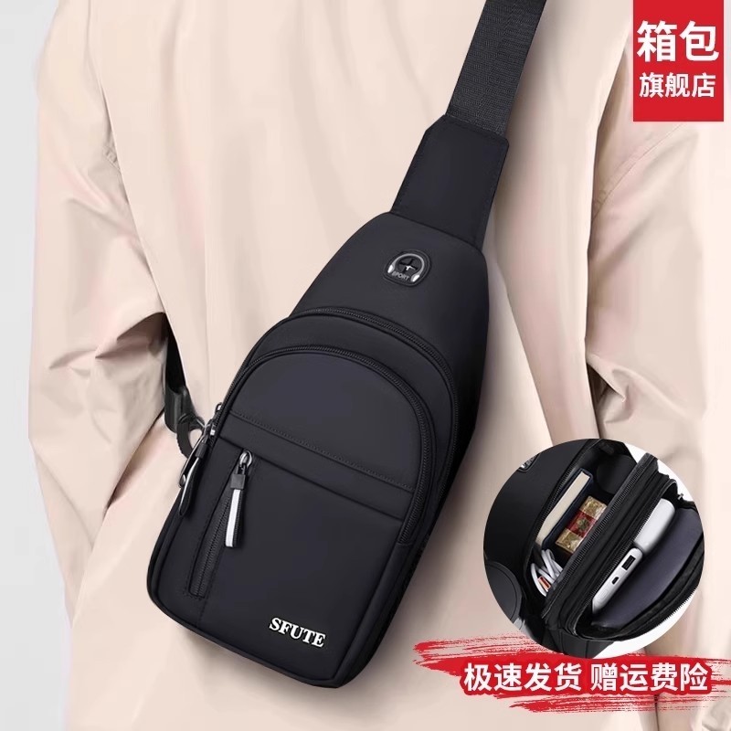 2025新款男士斜挎包防水运动单肩包休闲大容量胸包磁吸扣通勤时尚