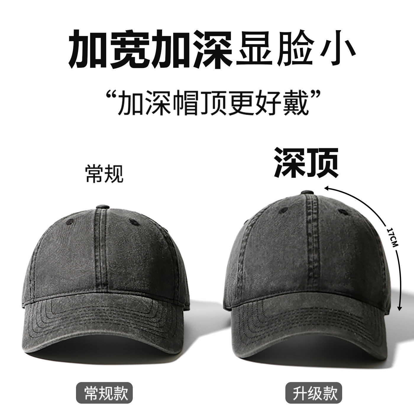 复古美式深顶棒球帽加深软顶水洗帽子纯色基础灰色鸭舌帽