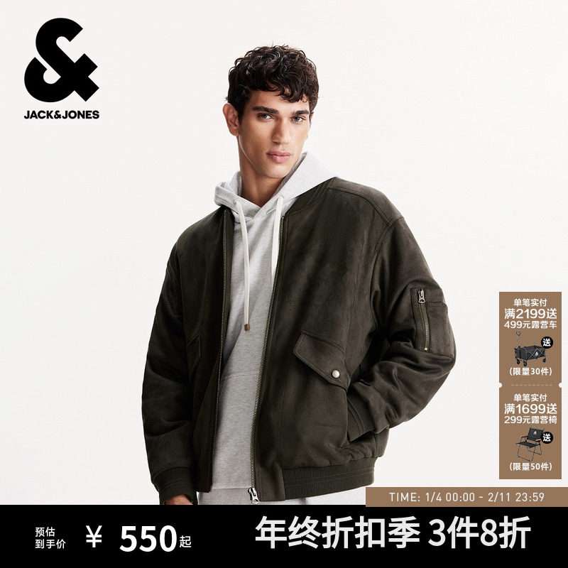 杰克琼斯男装男生秋冬宽松棒球领棉服2025年新款经典百搭舒适外套