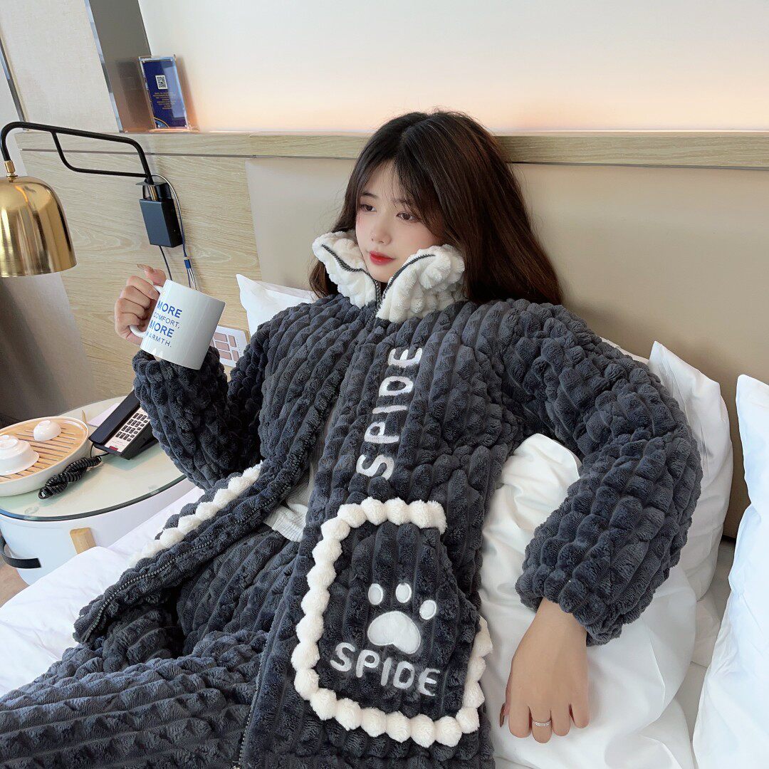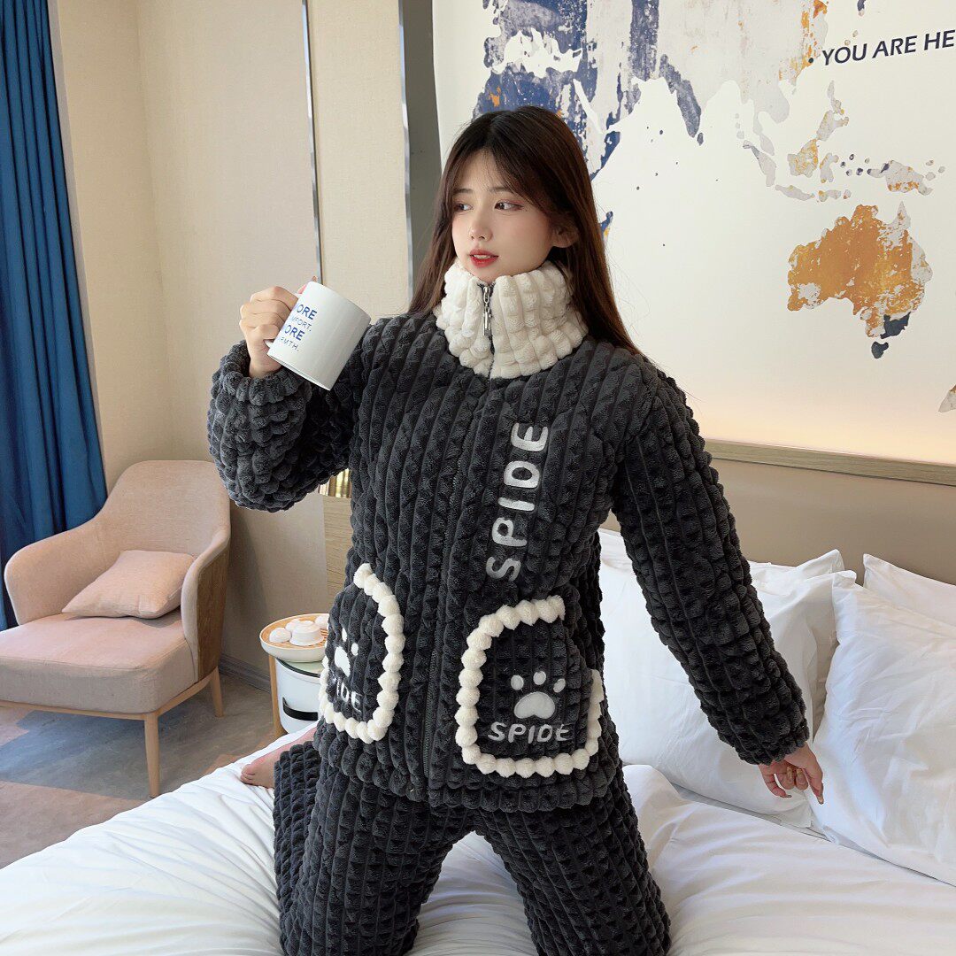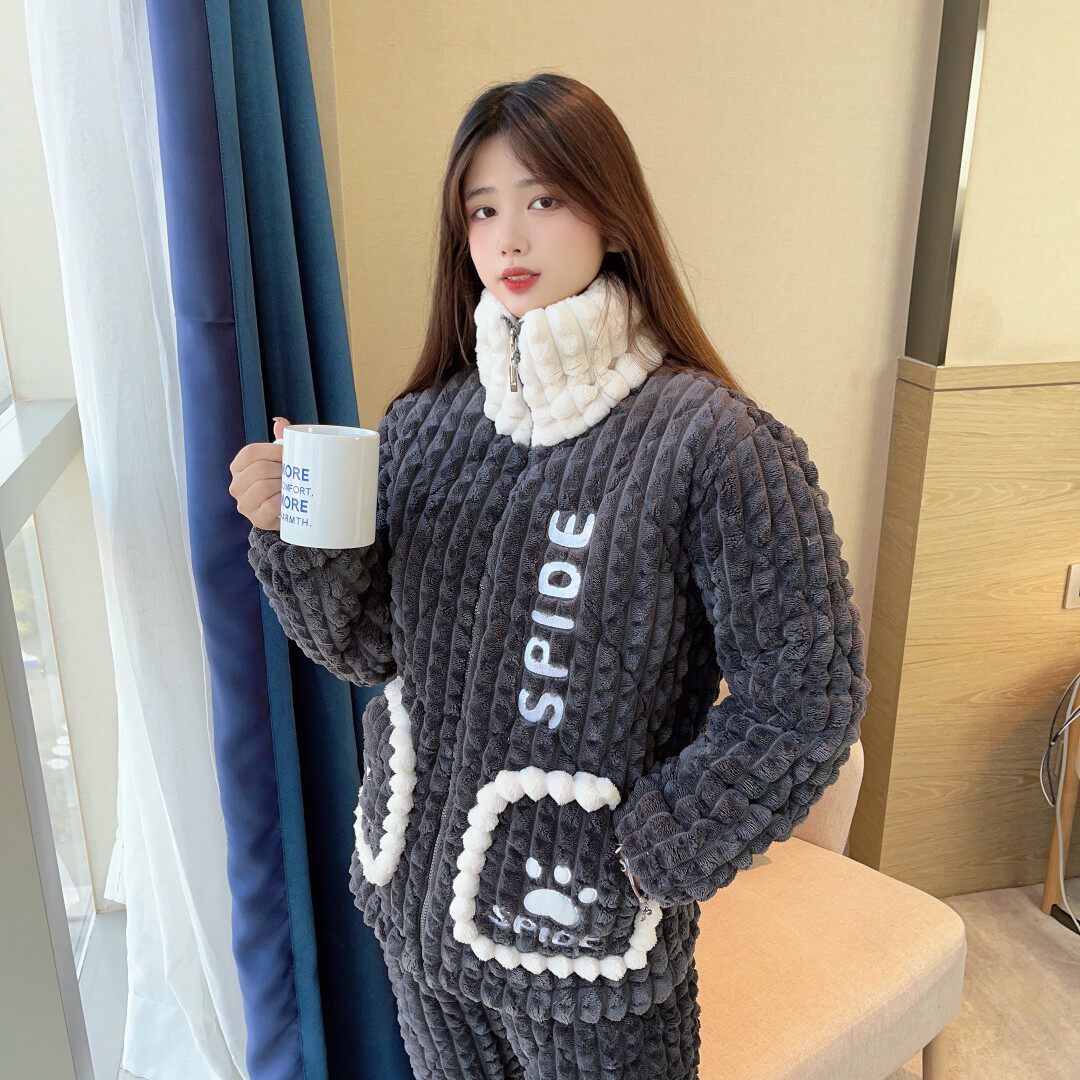 宝蒂兰加肥加大码三层夹棉厚情侣款加厚加绒睡衣保暖家居服冬季