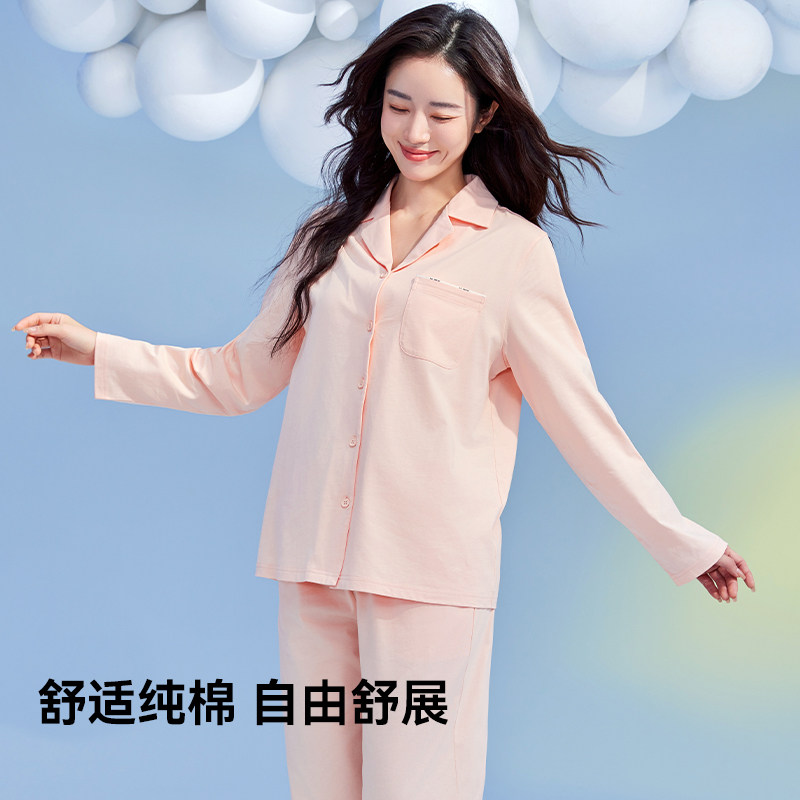 浪莎睡衣女春秋款纯棉长袖2025年新款秋冬大码薄款宽松开衫家居服